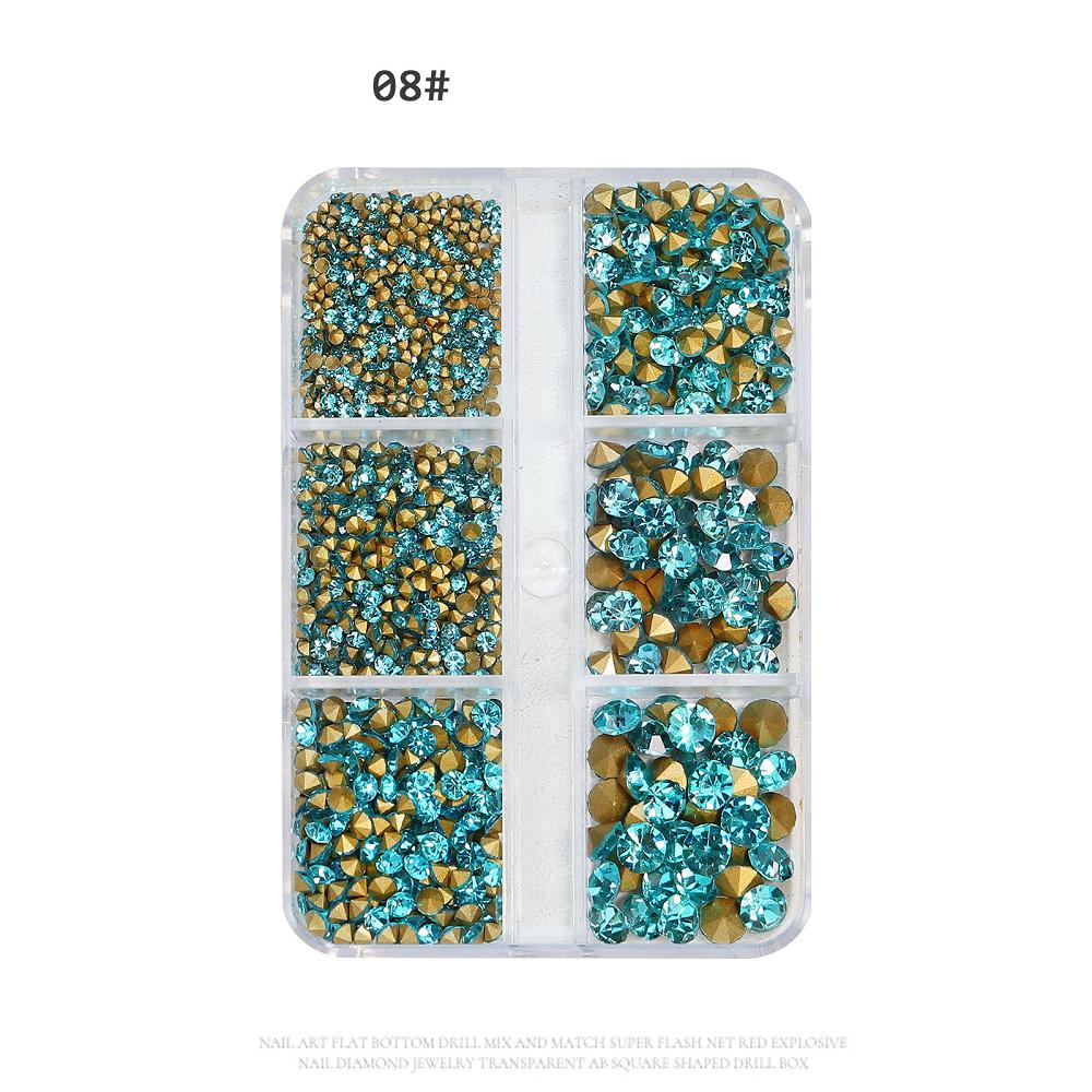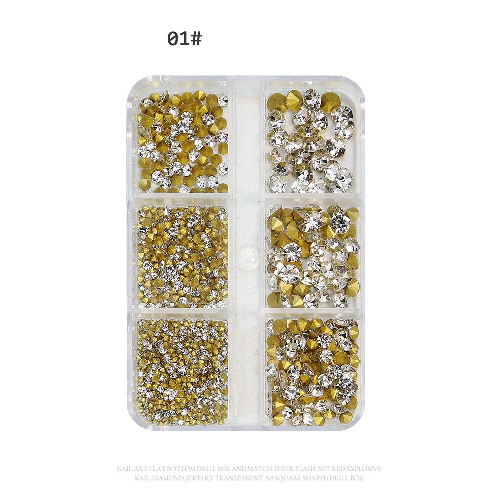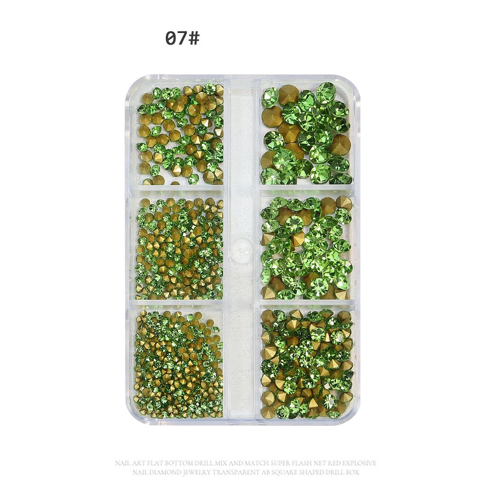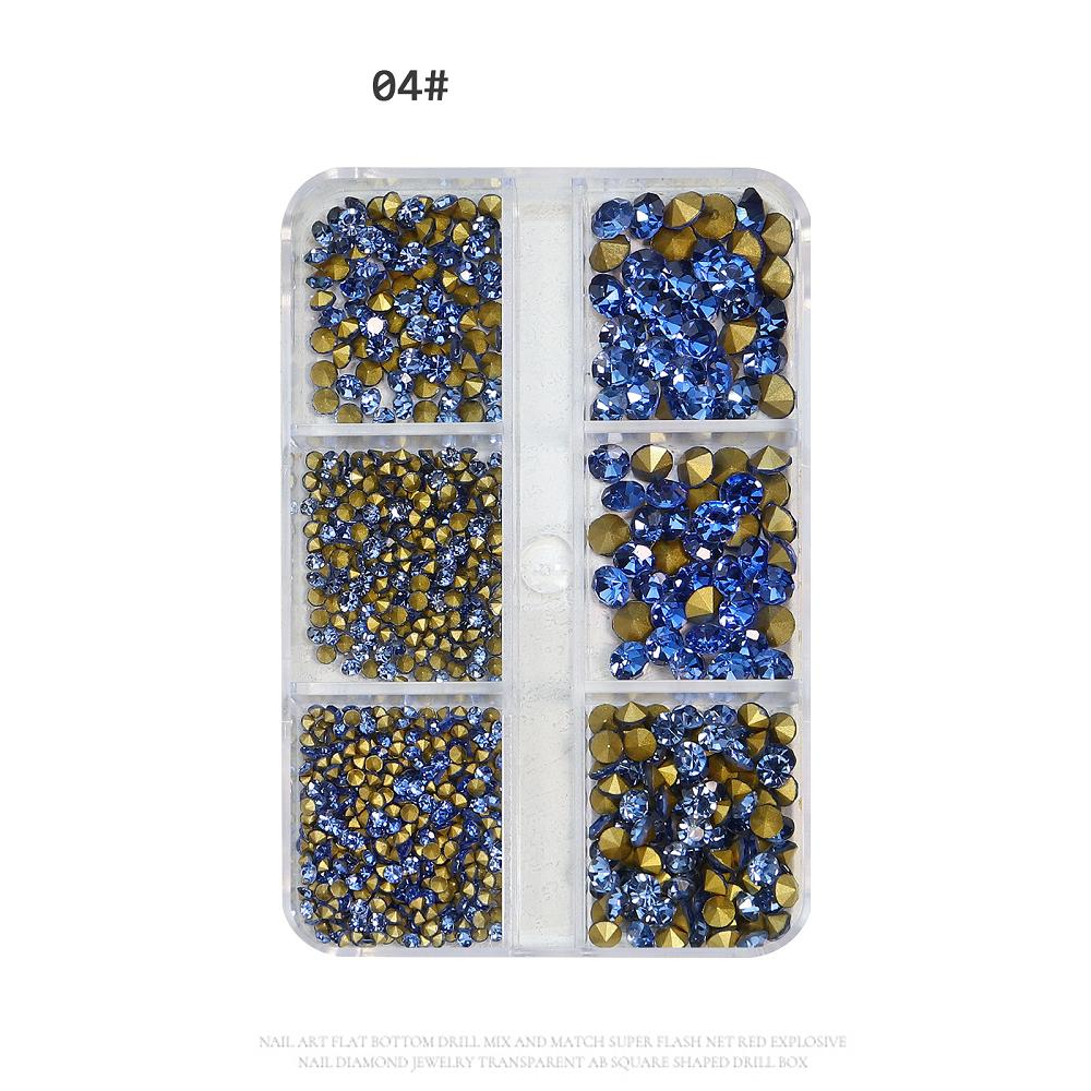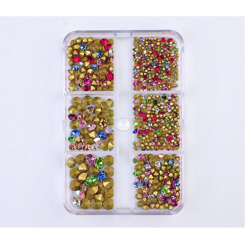 6 сеток/коробка, разные размеры, Стразы для ногтей с выступающим дном, хрустальное стекло, драгоценные камни, украшение для дизайна ногтей