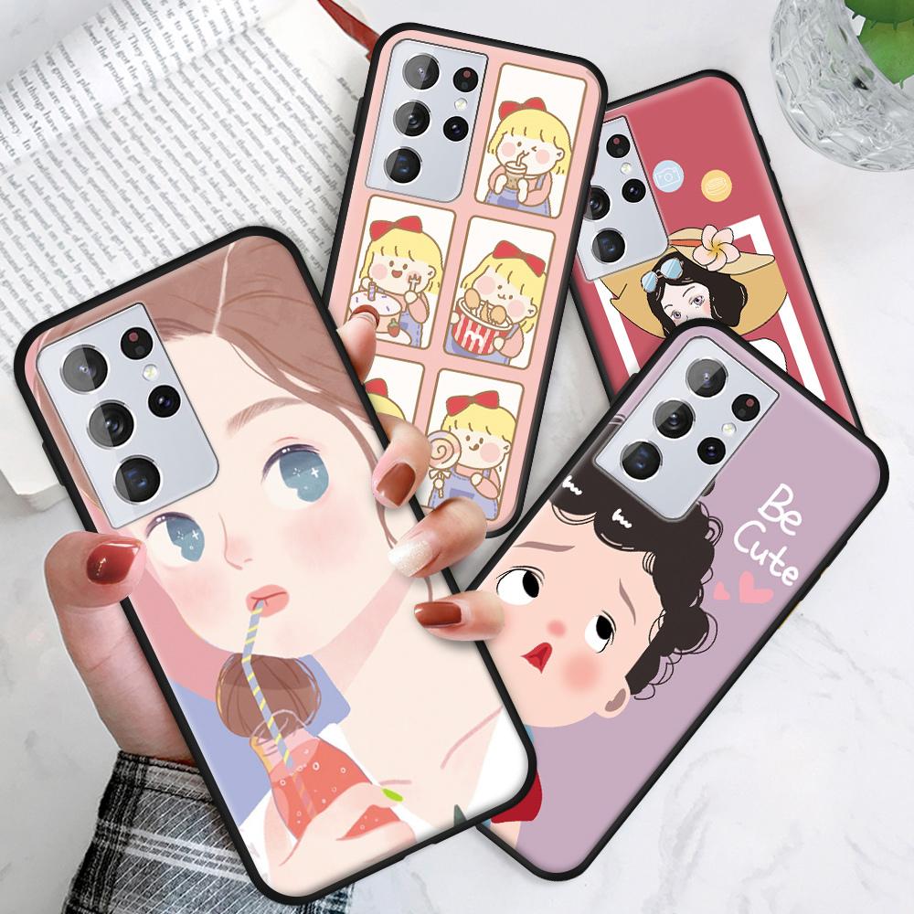 Милая Девушка Пьет Напиток Корпус С Образцом Красивые Девушки Дизайн Корпуса