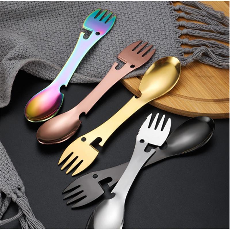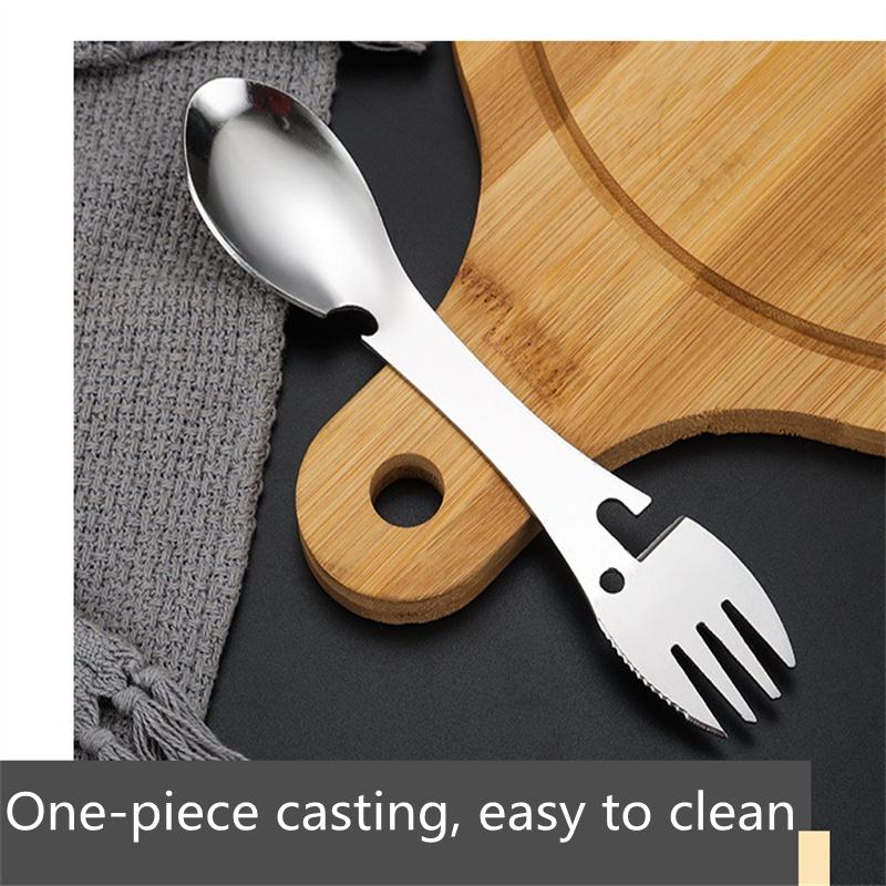 Многофункциональный нож из нержавеющей стали, ложка и вилка, портативная вилка и ложка для кемпинга, многофункциональная открывалка для бутылок, открывалка для консервных банок
