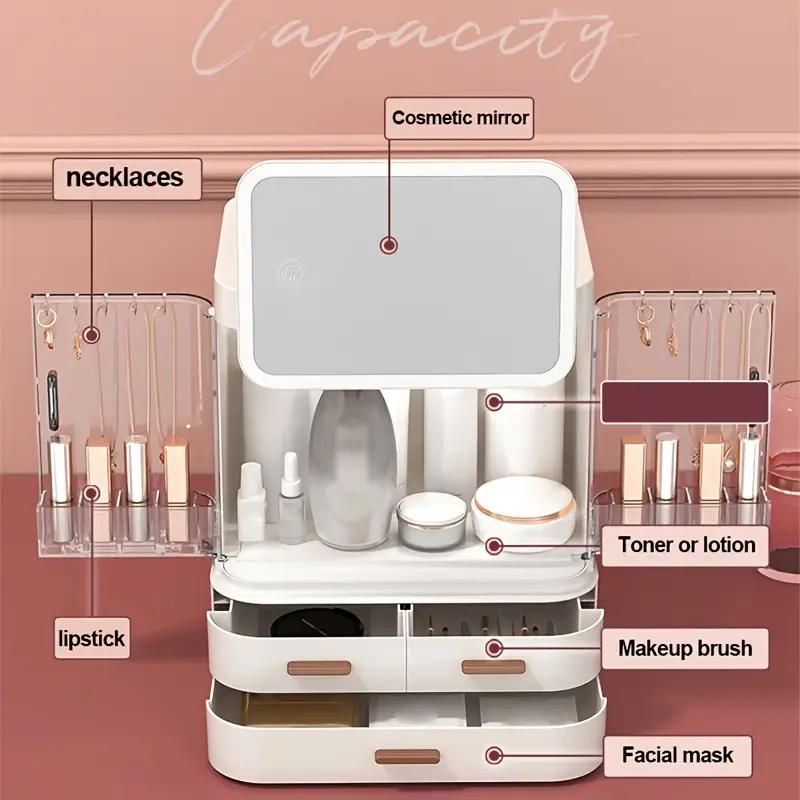 Ящик для хранения косметики с зеркалом. Универсальные настольные средства для ухода за кожей. Большой вместительный стеллаж для туалетного столика. — купить товар онлайн с бесплатной доставкой по всему миру!