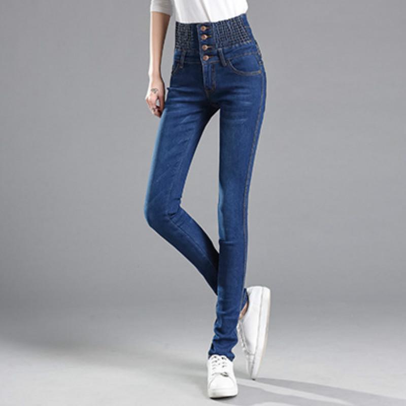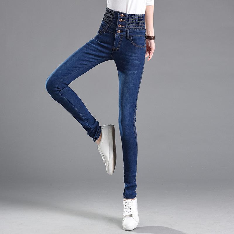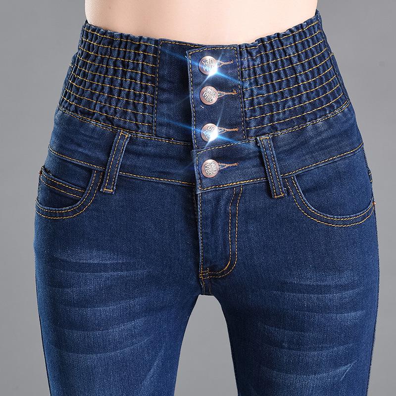 Женские модные джинсы большого размера с эластичной резинкой на талии и высокой талией, узкие брюки, брюки