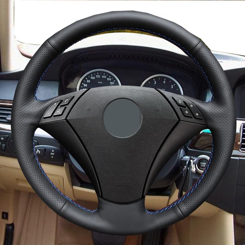 Сделай сам черный искусственный кожаный чехол для руля автомобиля ручной работы для BMW E60 (Седан) 530д 2003-2009 Е61 (гастроли)