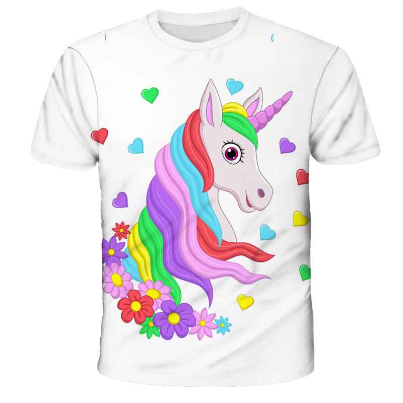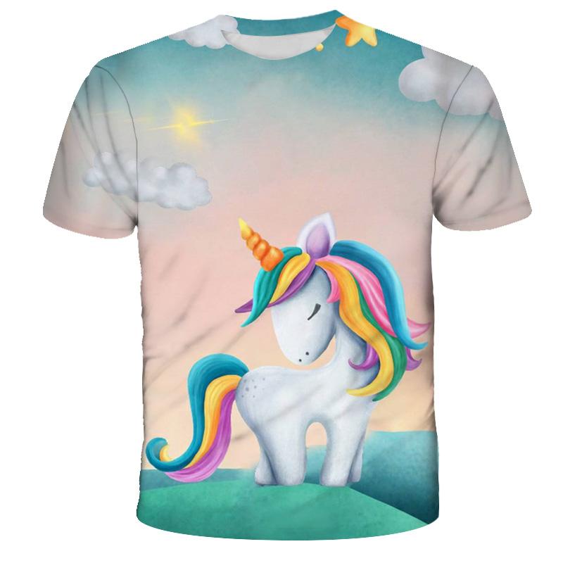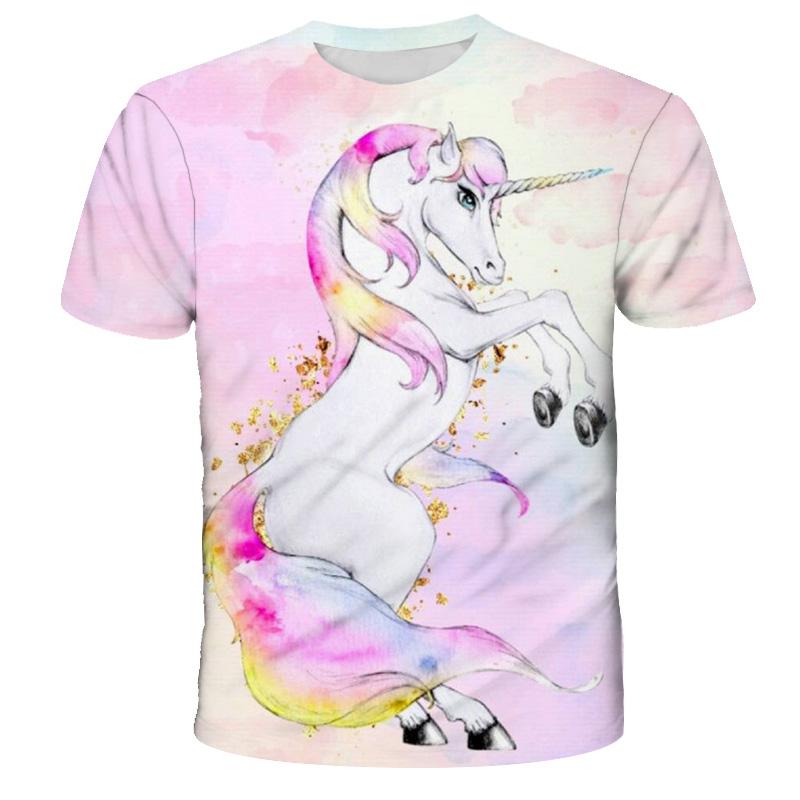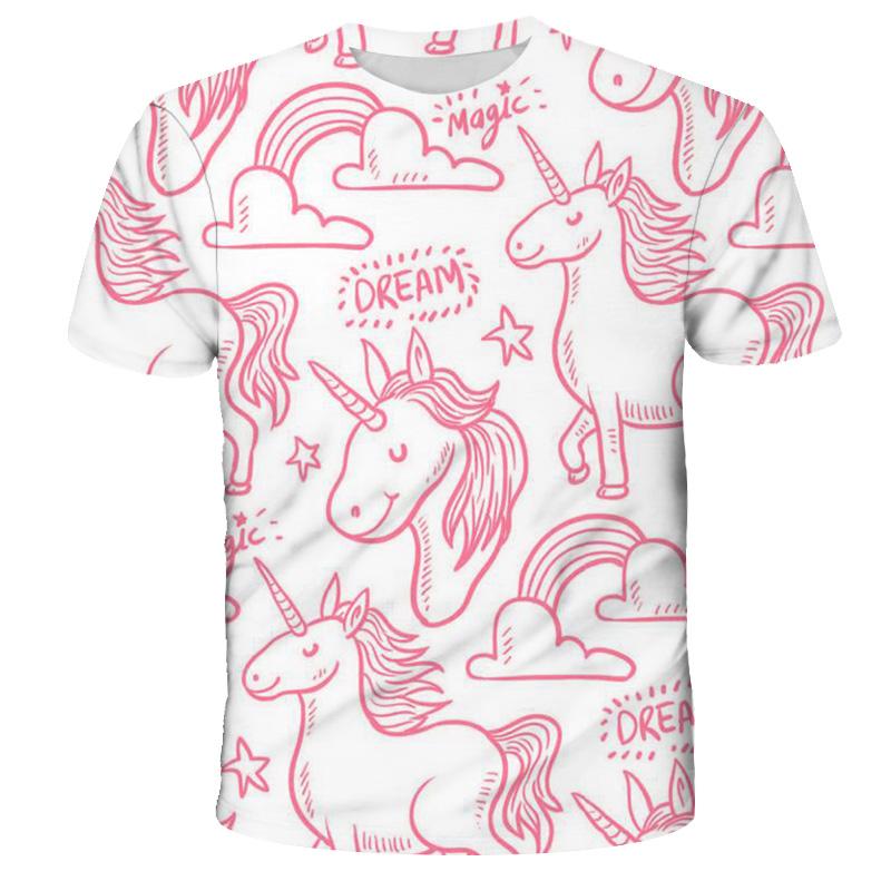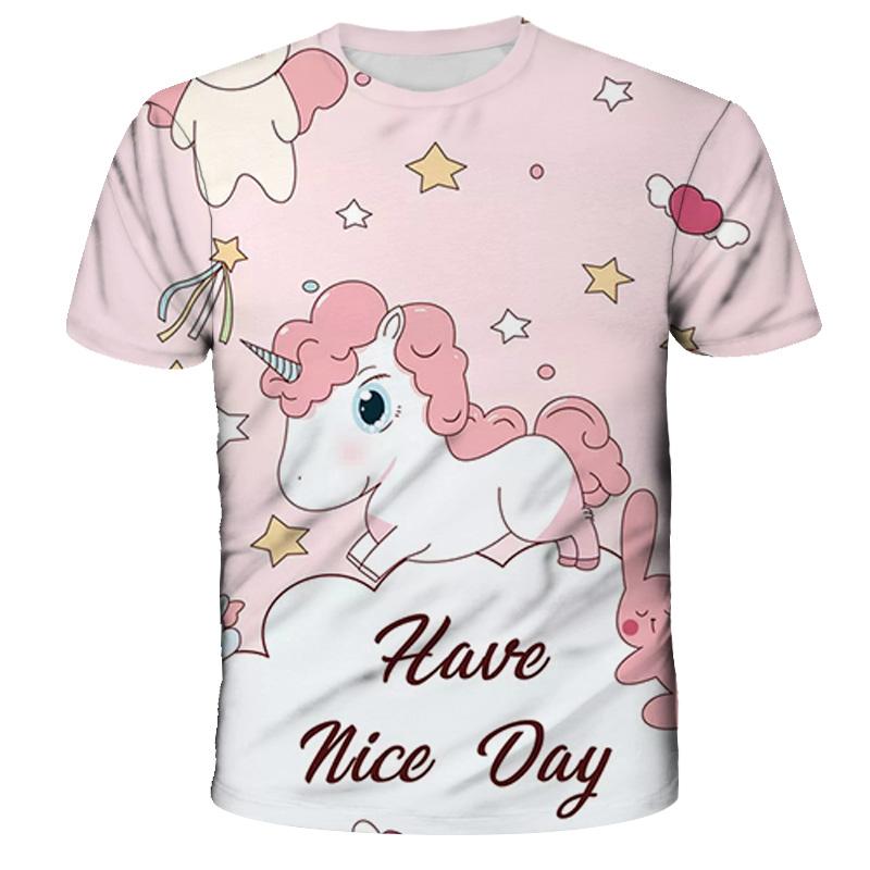 Летняя детская футболка с 3D розовым единорогом, одежда для подростков, футболки с популярным принтом для малышей, одежда для девочек, футболка