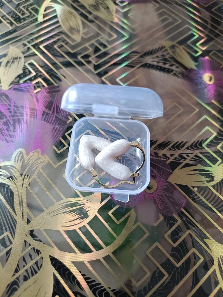 Милые серьги, в меру тяжёлые. Мои уши восприняли их не враждебно 😅 Надеваются легко. Единственный нюанс после трёх дней носки это то, что застёжка иногда промазывает мимо - разболталось соединение. (См фото)