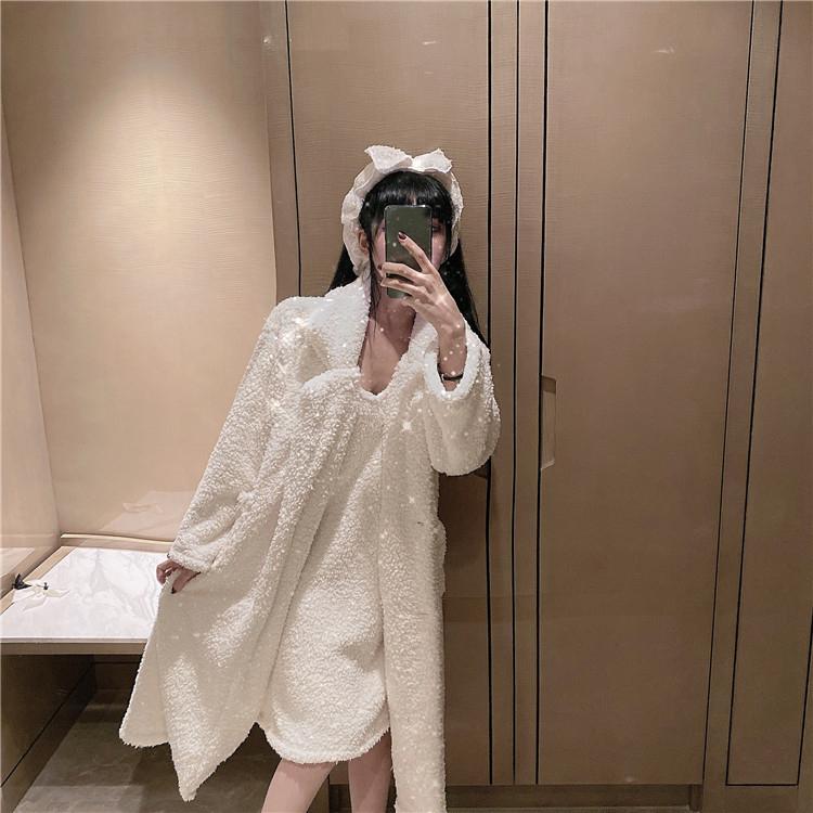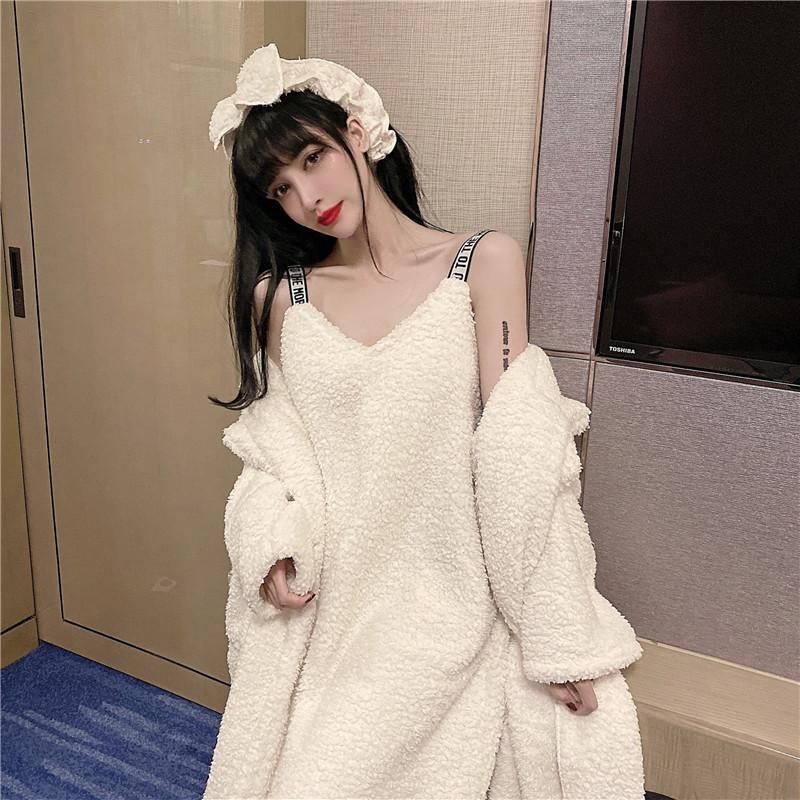 Осенне-зимняя корейская женская пижама Pure Desire, женская коралловая бархатная утепленная юбка на подтяжках, длинная ночная рубашка, комплект домашней одежды