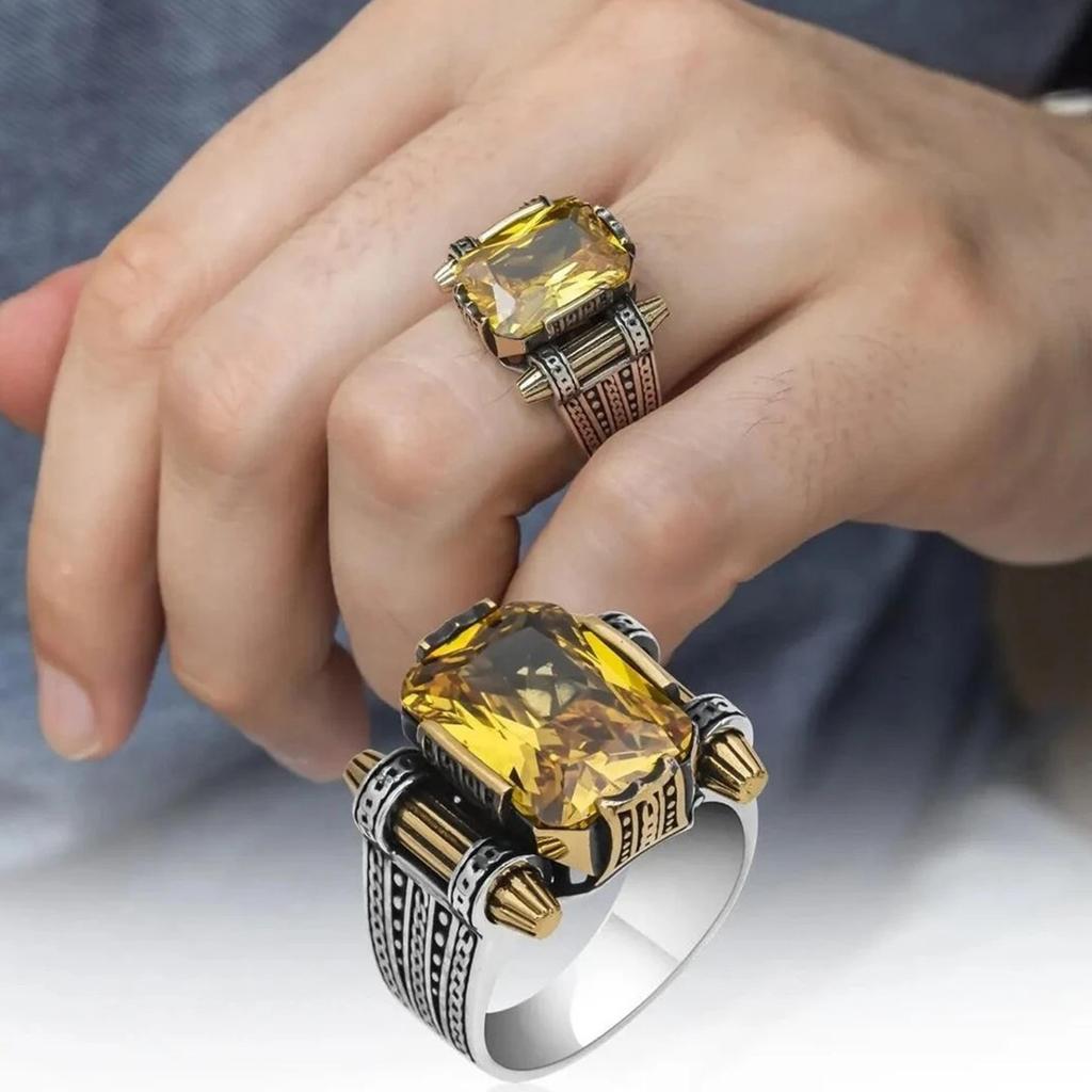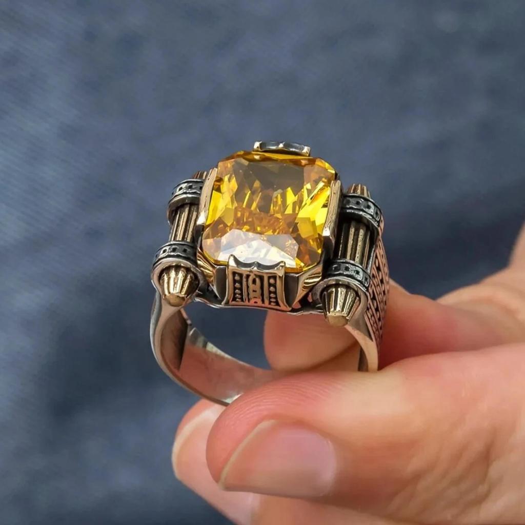 Серебряное мужское кольцо с цитриновым камнем, кольцо из стерлингового серебра 925 пробы, кольцо с цитрином, турецкое кольцо ручной работы, идея подарка для мужчин