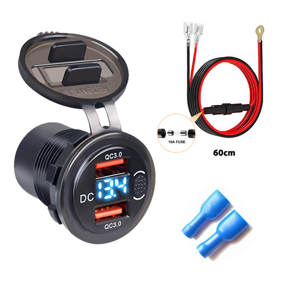 QC3.0 Dual USB 12V 24V 3.1A Адаптер автомобильного зарядного устройства с вольтметром Розетка для быстрого зарядного устройства Светодиодный цифровой дисплей для автомобиля Лодка Морской мотоцикл