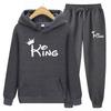 Осенне-зимние толстовки + брюки, комплект из двух предметов, мужские и женские толстовки с принтом king, спортивные костюмы, брюки для бега, плотная теплая одежда для мужчин