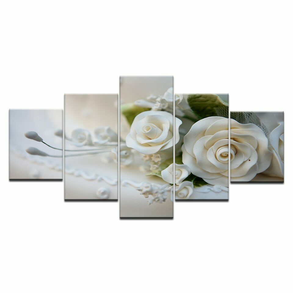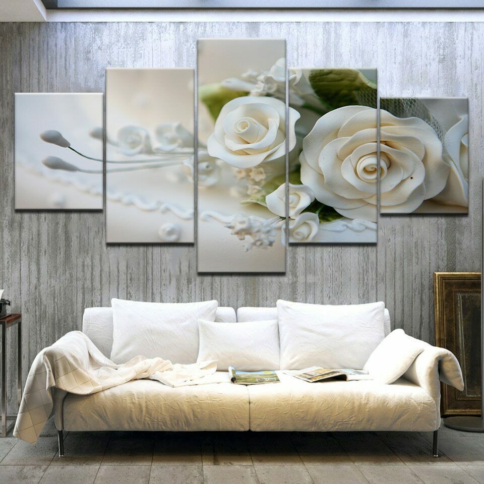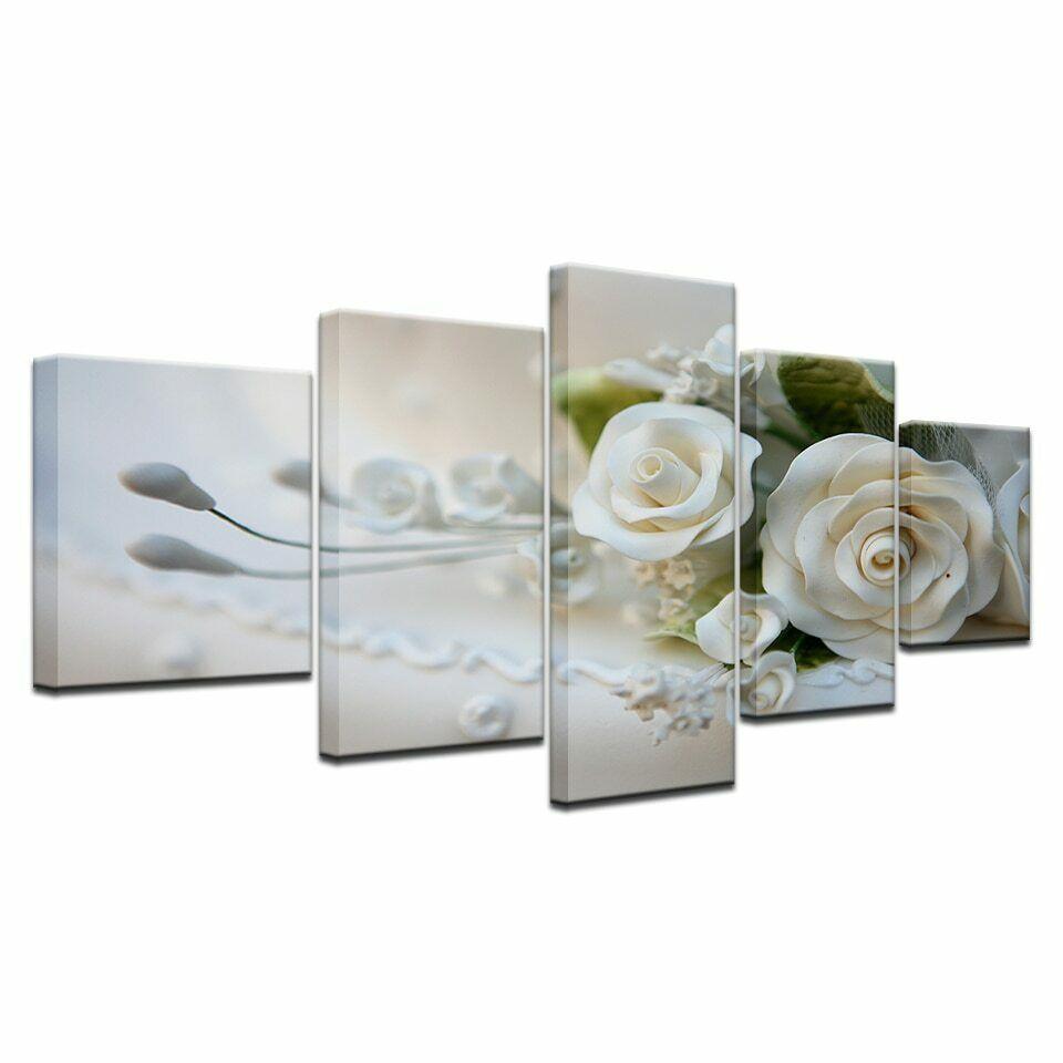5 шт., белые розы, цветы, цветочный декор на холсте, картина, настенное искусство, HD печать, 5 шт., фотографии, домашний декор, современный декор комнаты, абстрактная картина