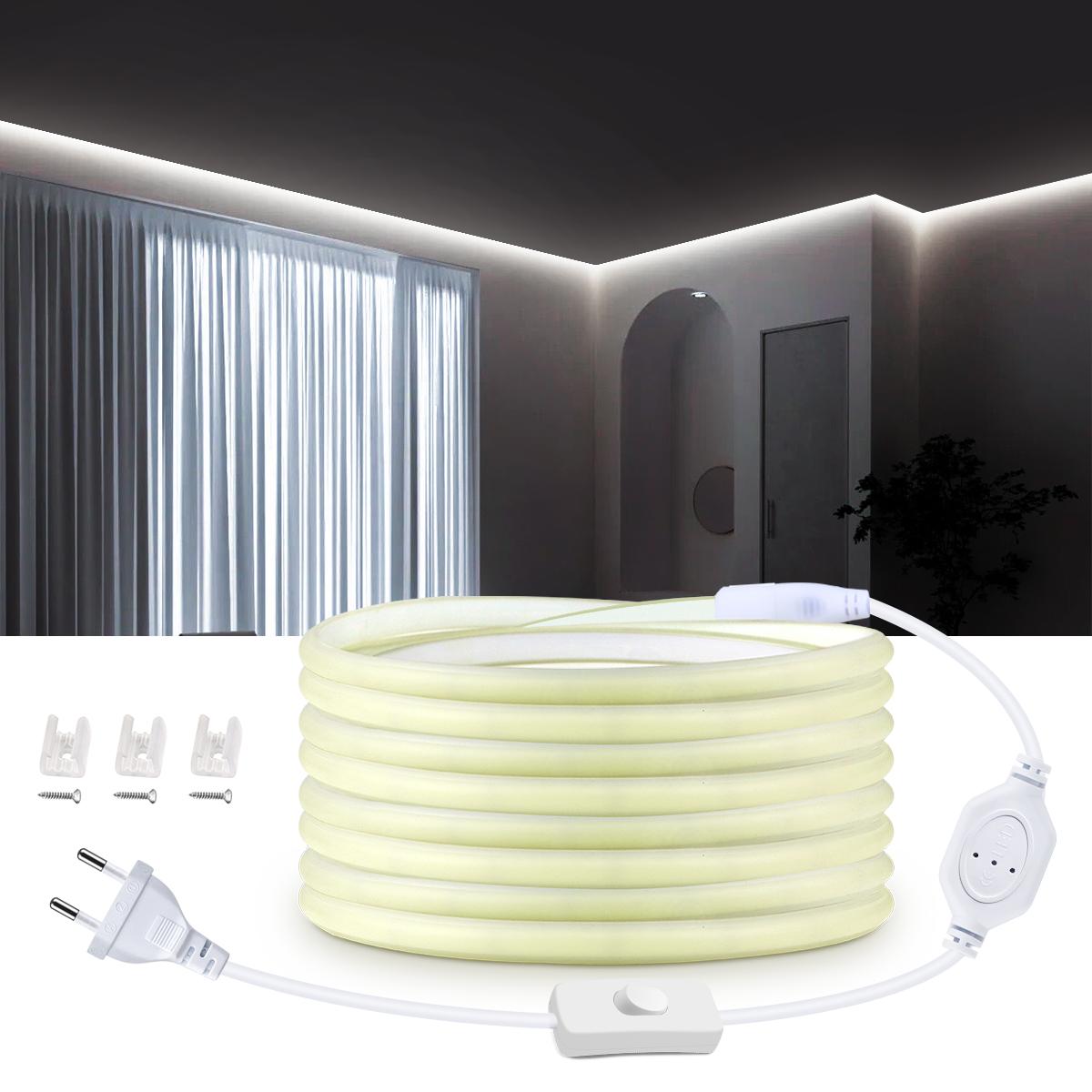 Вилка европейского стандарта, 220 В, COB, светодиодная лента, высокая яркость, уличный сад, FOB, светодиодные ленты для двора, спальни, кухни, настенное освещение — купить товар онлайн с бесплатной доставкой по всему миру!