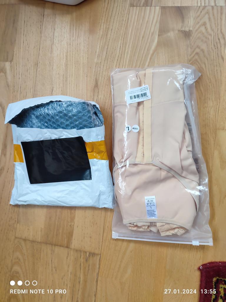 Получила вот такой "комбинезон " для утягивания тела размер ХЛ, он мне пришёлся в самый раз. На мои параметры : Ог- 108, От -88, Об- 112-114 налез с трудом. Конечно сильно утягивает, но есть к чему стремиться и худеть постепенно! Дополняю, походила в течение двух часов по квартире, ноги у меня пережатые были в верхней части, сразу отекли, в общем нельзя мне носить такие малые вещи. Да и вообще эти вещи скорее для молодых, которые стремятся к идеальной фигуре. Буду жаловаться в СП. Потом сообщу, что решат.