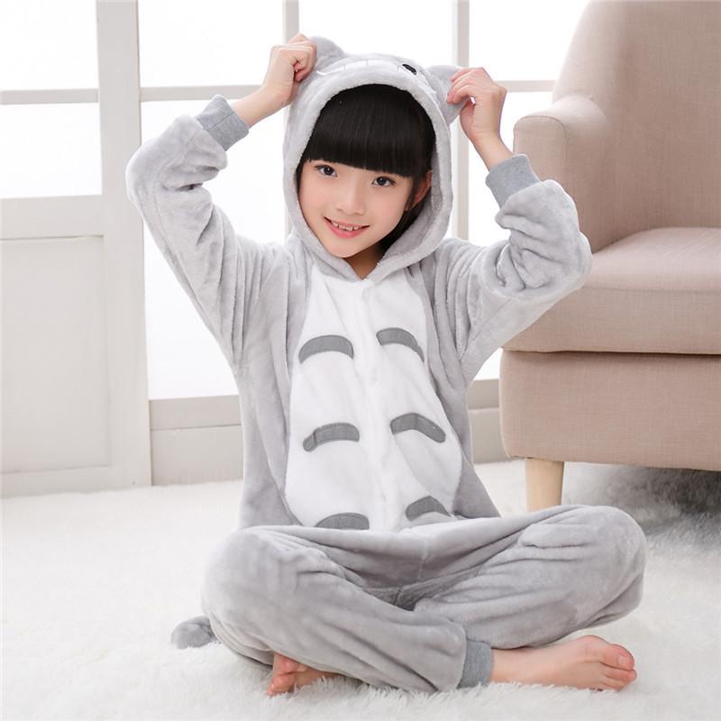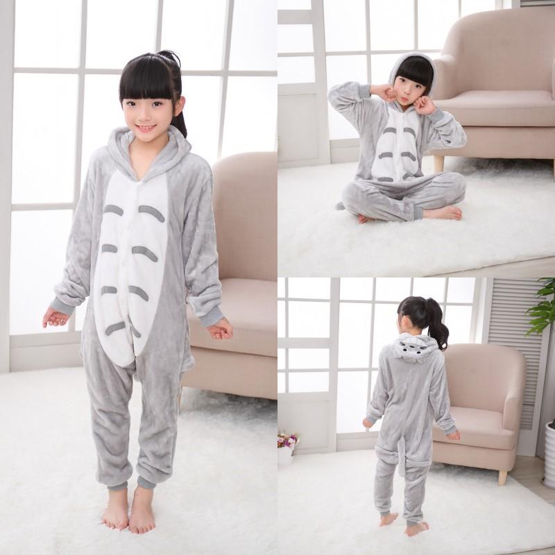 Кигуруми для детей, детские пижамы Тоторо, зимняя фланелевая теплая одежда для сна для мальчиков и девочек, комбинезоны с животными, комбинезоны с обувью, перчатки, серые