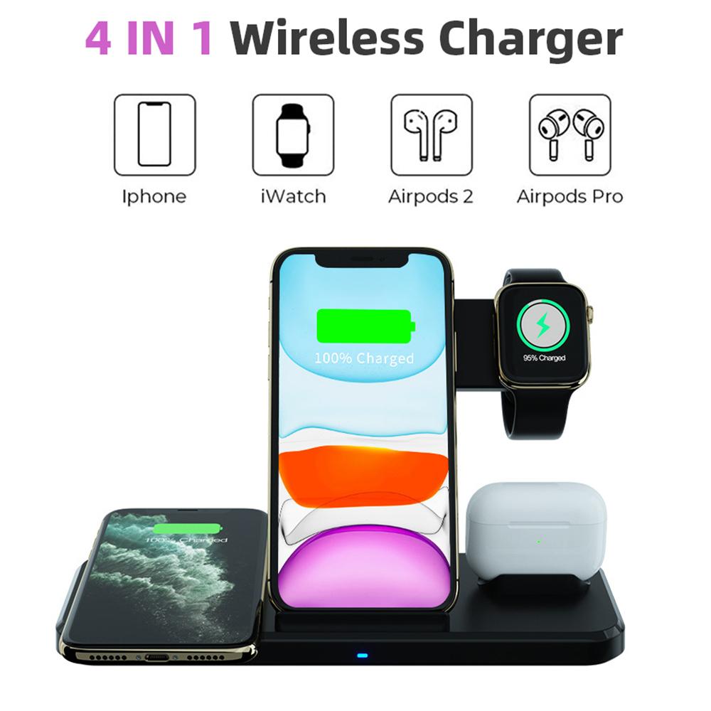 Складное беспроводное зарядное устройство QI 4 в 1 15 Вт для iPhone Samsung, док-станция для быстрой зарядки Apple Watch Airpods Pro