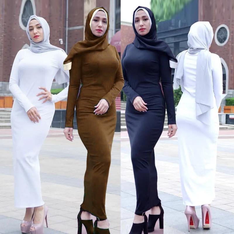 Абая мусульманское женское эластичное платье макси, простой халат, длинные облегающие платья, Рамадан с круглым вырезом