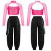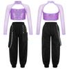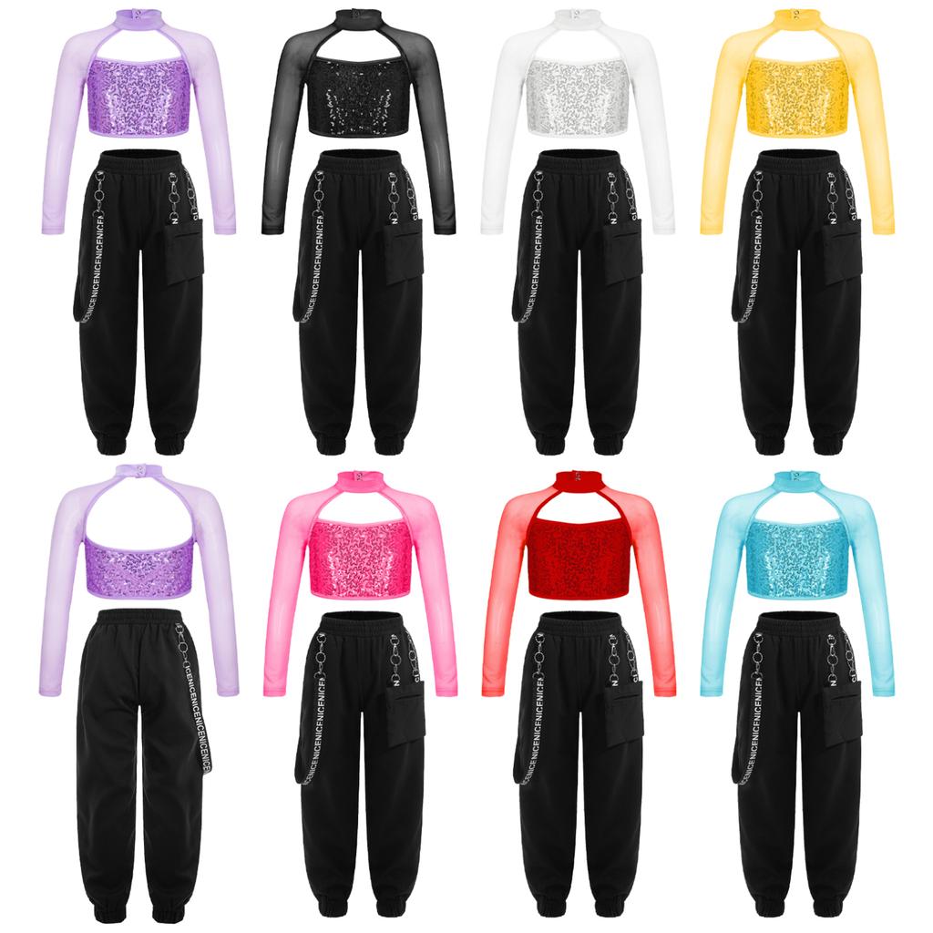 Детский комплект одежды для уличных танцев для девочек, укороченный топ с блестящими пайетками и длинными рукавами, длинные штаны, комплект детской одежды