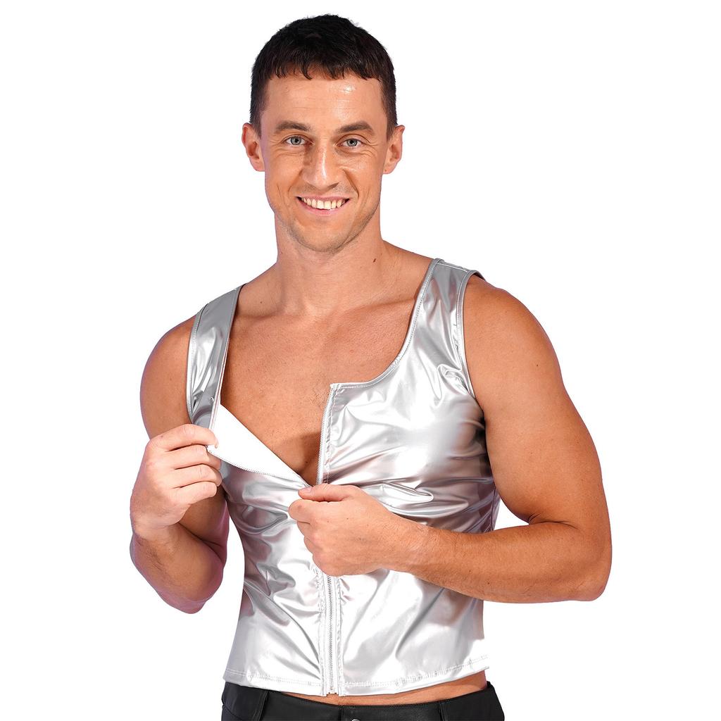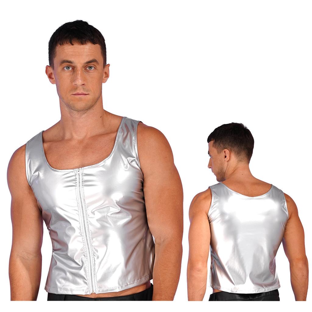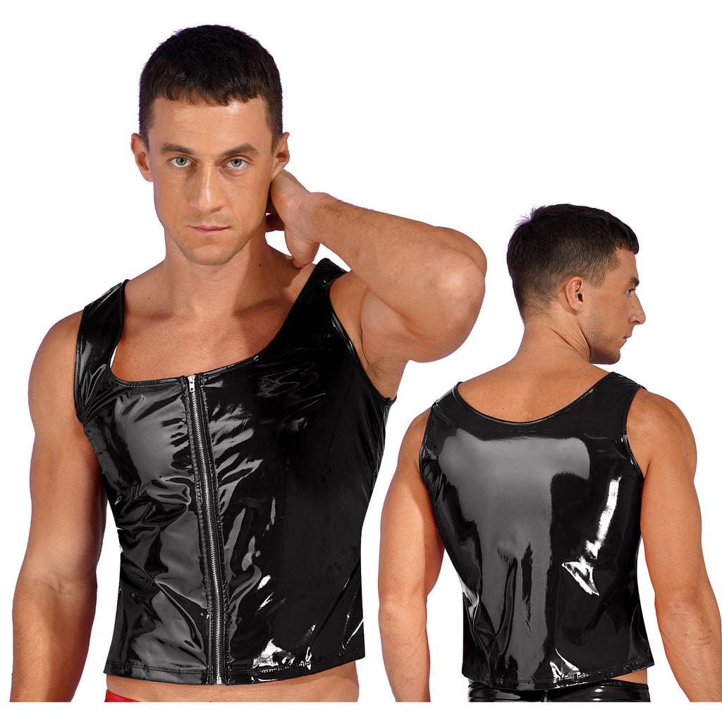 Мужская укороченная майка из лакированной кожи с мокрым эффектом, топ-бюстье, готические топы без рукавов, уличная одежда