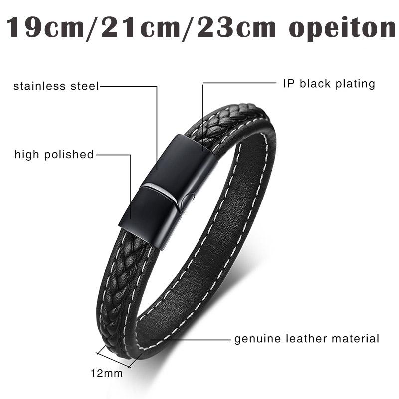Черный браслет из натуральной кожи для мужчин с гравировкой имени по индивидуальному заказу