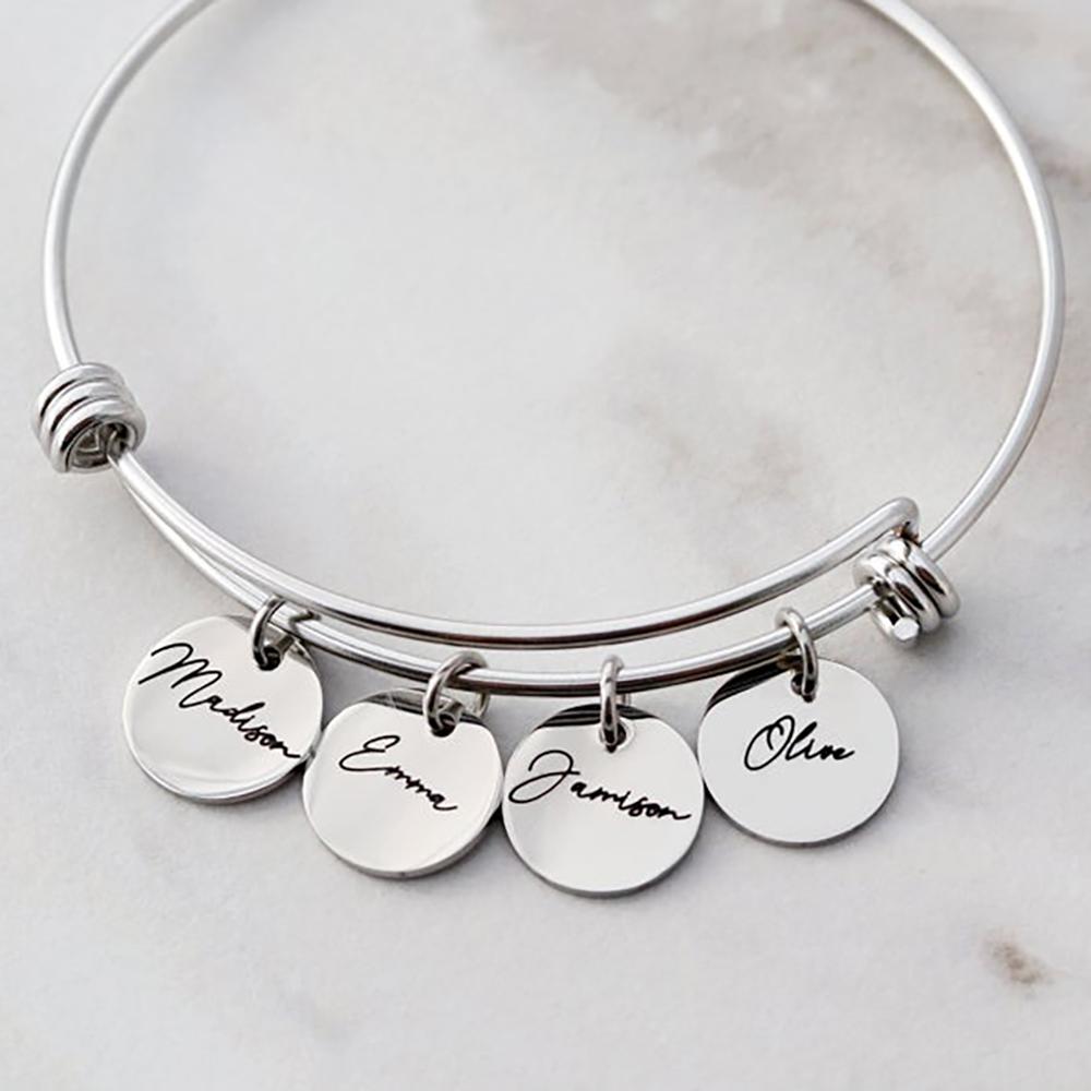 Персонализированный регулируемый браслет с гравировкой 1-5 имен, круглые сердечки, подвески, браслеты из нержавеющей стали для женщин — купить товар онлайн с бесплатной доставкой до всему миру!