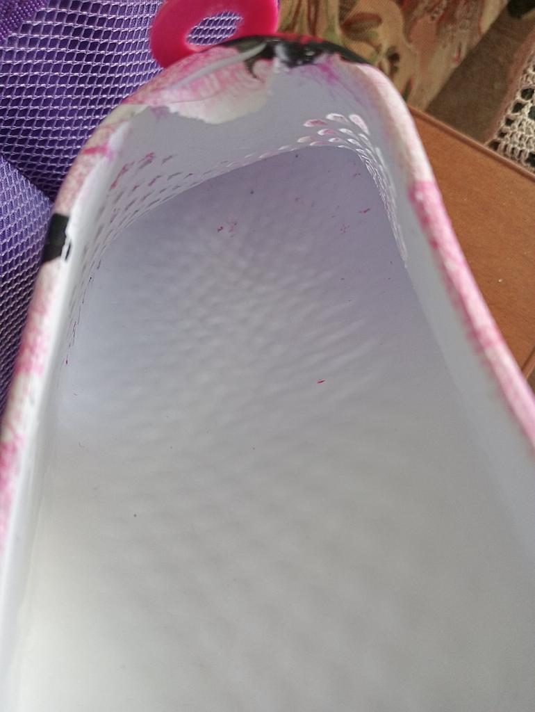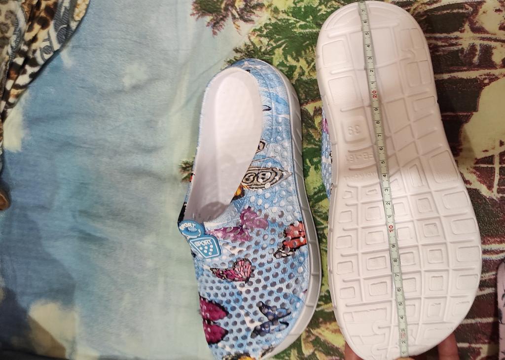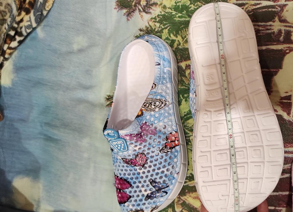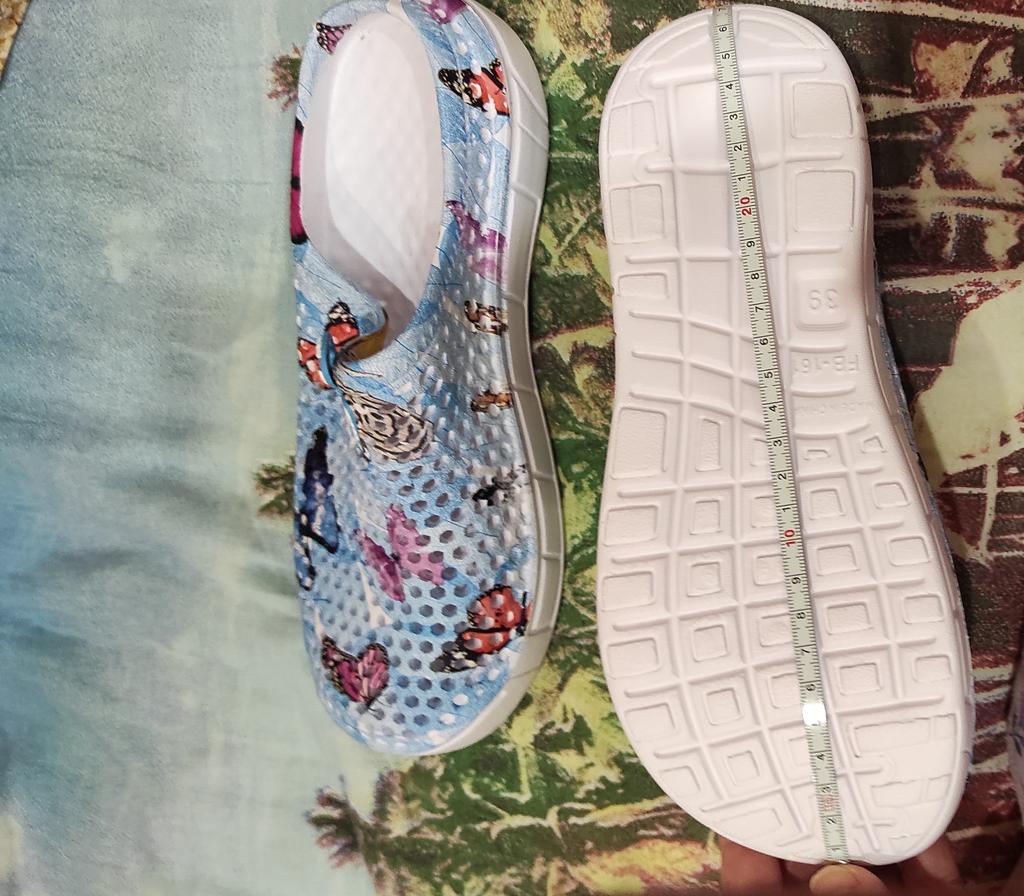Один шлепок больше другого на сантиметр и больше в подъёме! При ходьбе по квартире шлёпает,! Получается,что они разного размера,хотя напечатано на обоих р.39,до этого выписывала дочери такие,они были аккуратные,одинаковые по длине...как их можно носить,если нога ёрзает по шлепанцу и он слетает,т к.большой!