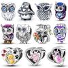 925 Серебряный Фламинго Павлин Сова Пингвин Птицы Мультфильм Мода Шарик Подходит Подвески Браслет Женщины DIY Ювелирные Изделия