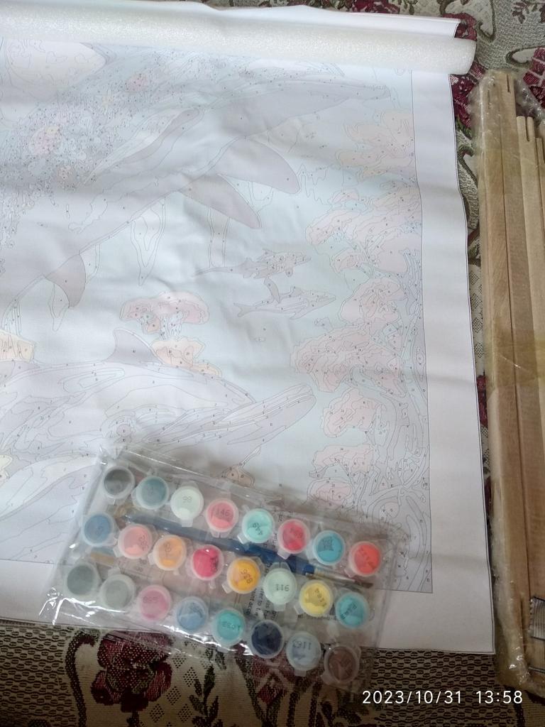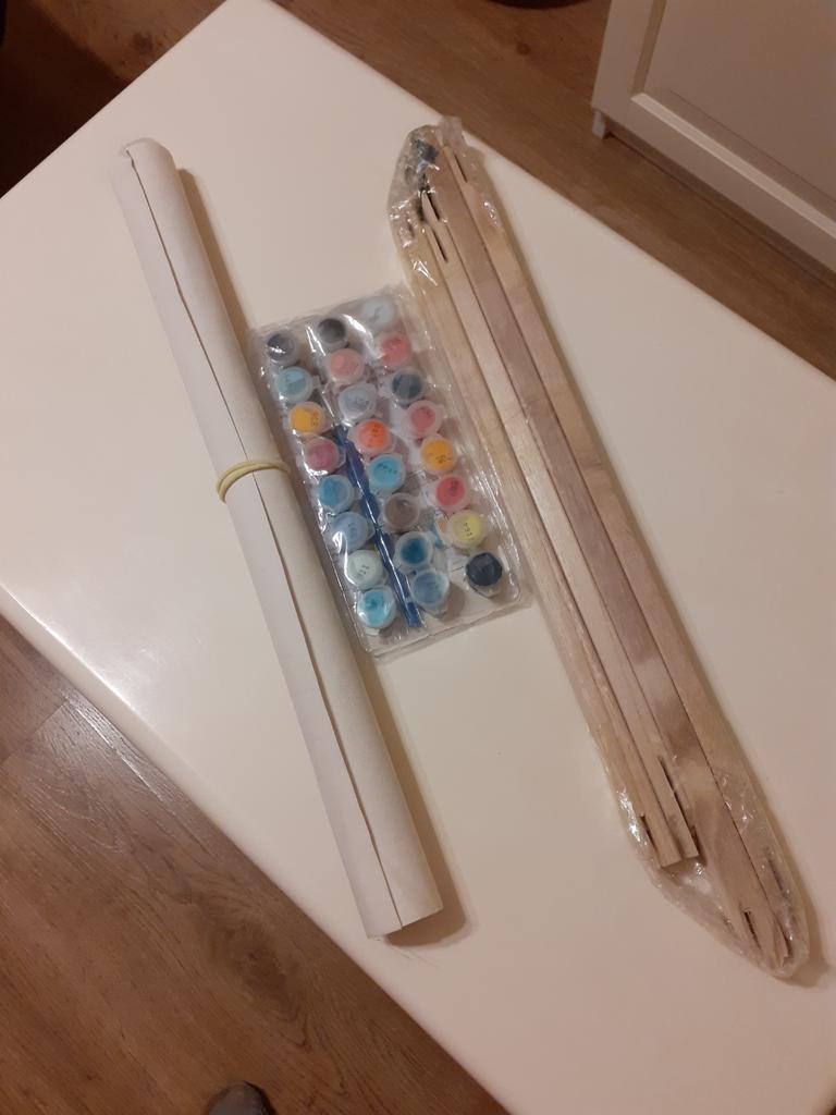 Ну вот, получила я картину по номерам. Это мой третий выигрыш за 1 рубль. ( за 6 лет моего пребывания на Джуме) Картинка с рамкой "сделай сам". Правда в комплекте нет основания под холст, а только палочки для рамки. Холст синтетический, контуры хорошо прорисованы - думаю подарить внучке на Новый год. Краски свежие. Я рада.