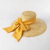 Высококачественная вязаная вручную шляпа из пшеничной соломы с плоским верхом и большим карнизом, женская модная соломенная шляпа с большим бантом, пляжная козырек от солнца
