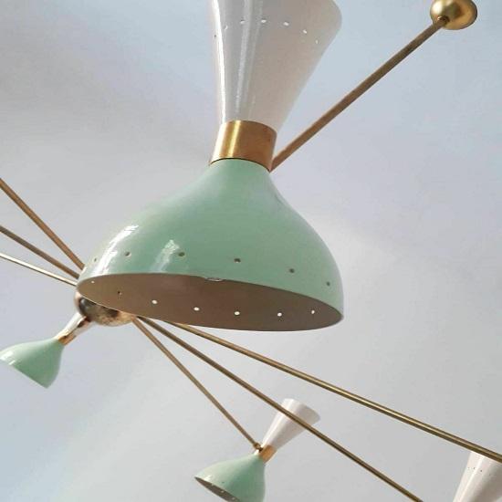 Огромная итальянская люстра в стиле 1950-х годов, потолочные светильники Sputnik с 8 кронштейнами от Stilnovo. Этот звездообразный светильник изготовлен из компонентов, одобренных UL.