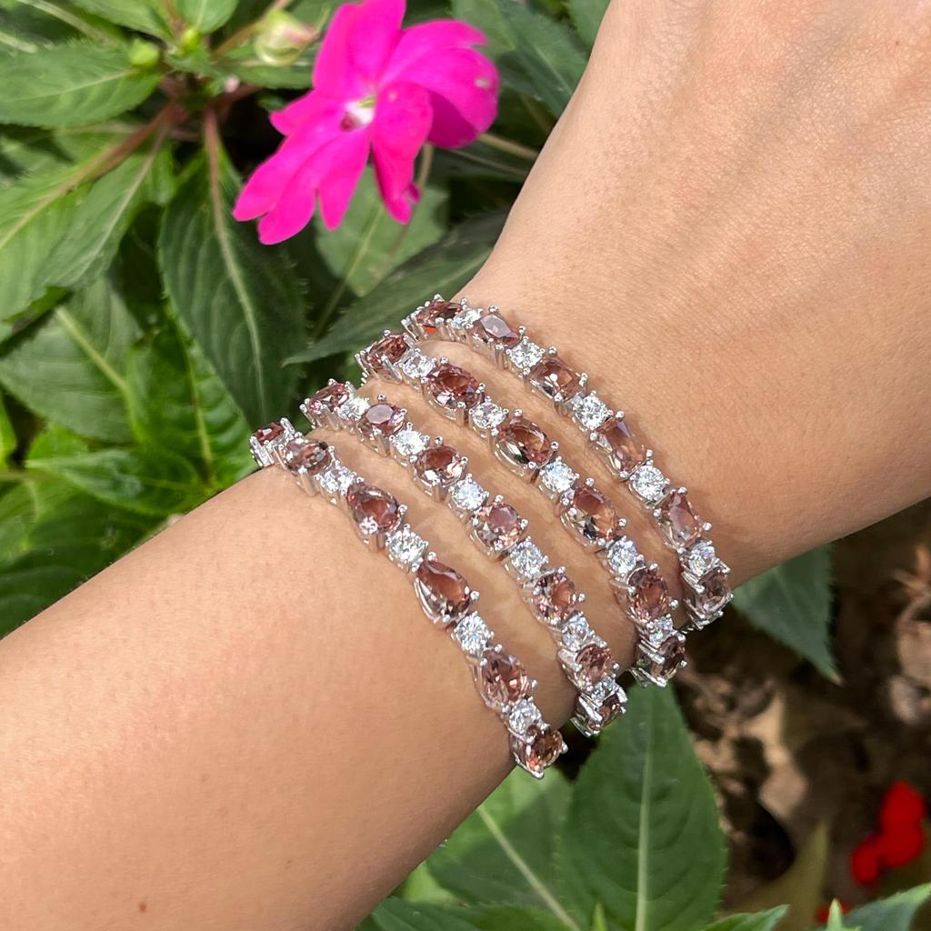 Драгоценные камни Зултанит известны своими уникальными свойствами изменения цвета, демонстрируя оттенки зеленого, желтого и розового в зависимости от условий освещения.. Этот браслет демонстрирует завораживающую игру цвета султанита, что делает его по-настоящему привлекательным аксессуаром.