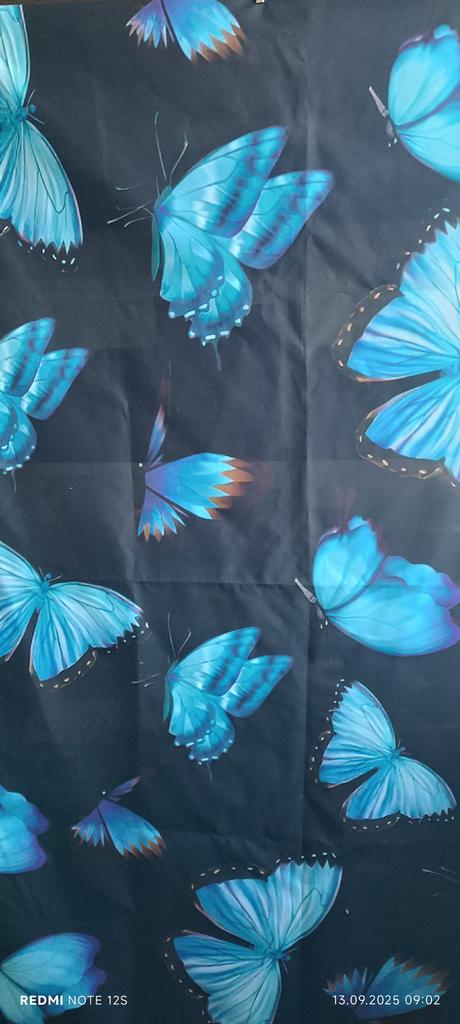 Ткань тонкая, плотная, типа габардина. Бабочки огромные, думала, будут помельче. В комплект идут ещё три крепежа. Размер соответствует.