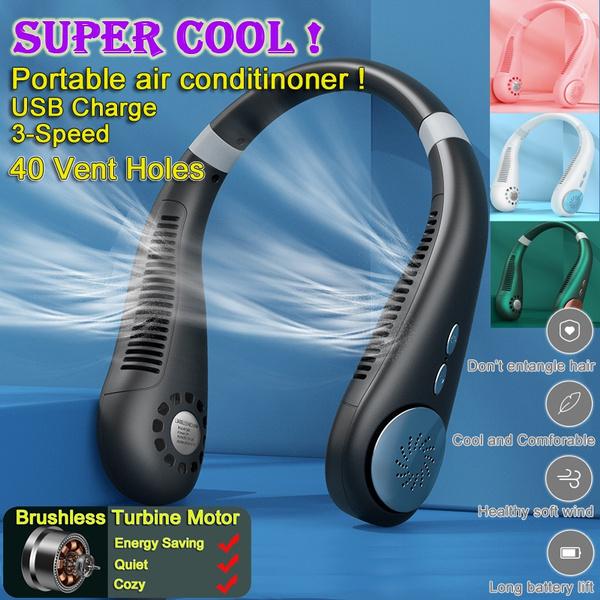 Подвесной двойной вентилятор с охлаждающей шеей, мини-безлопастной вентилятор, USB портативный перезаряжаемый тихий вентилятор для путешествий на открытом воздухе в помещении