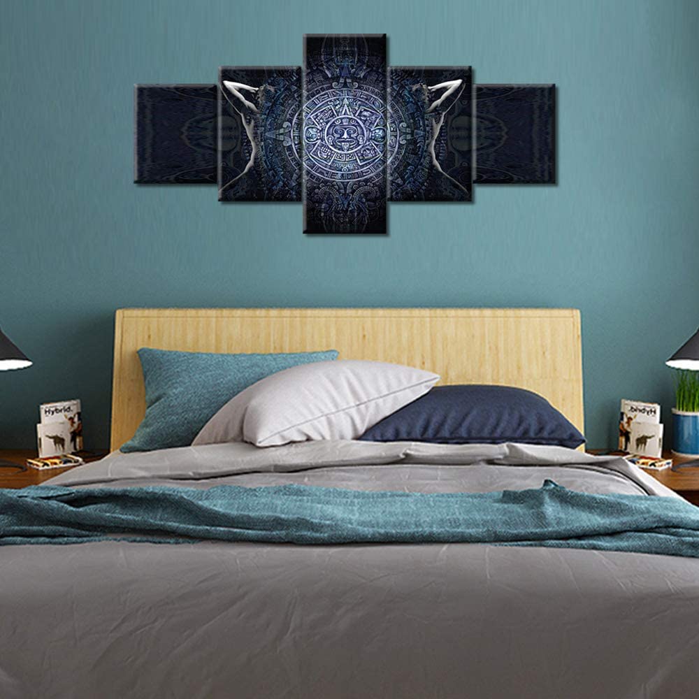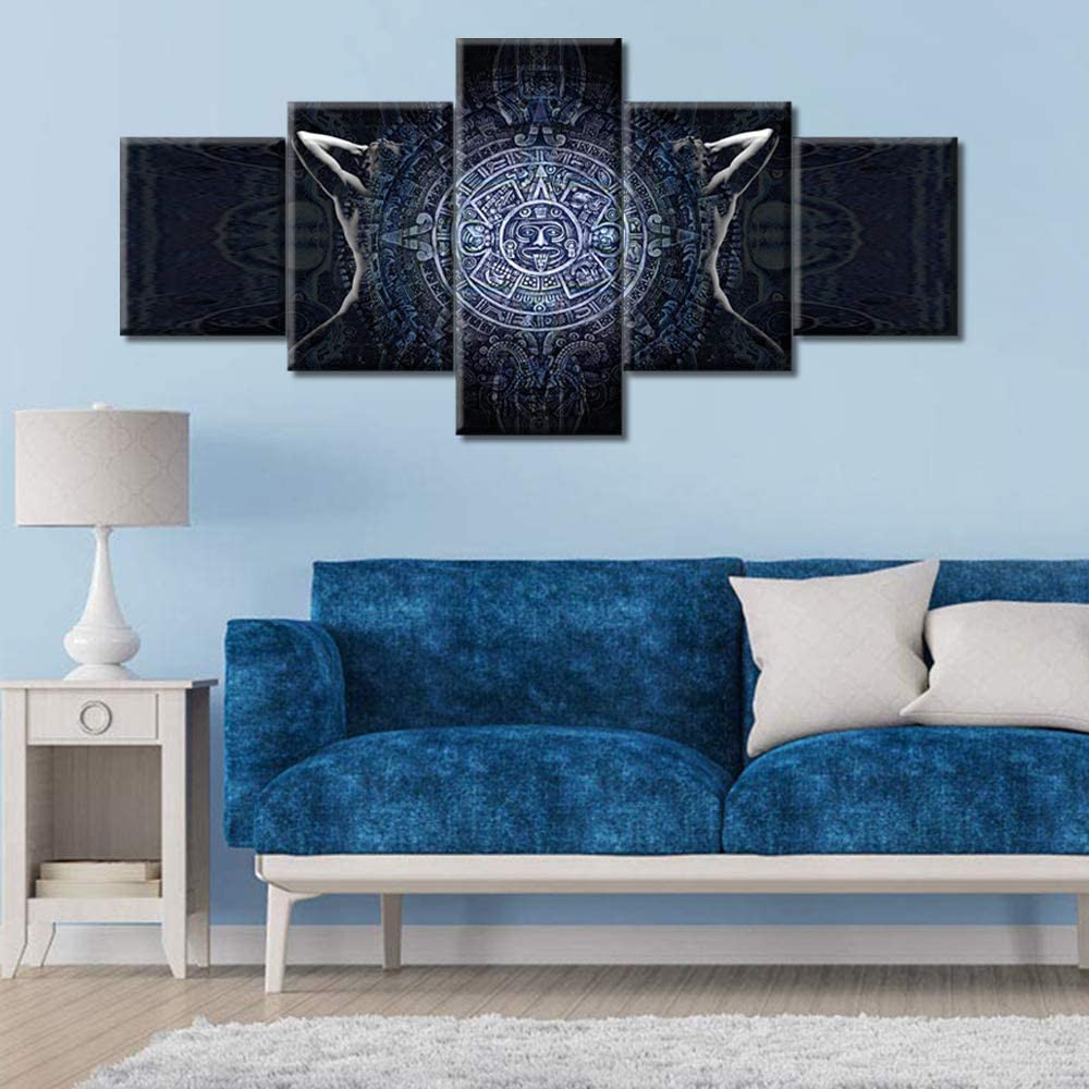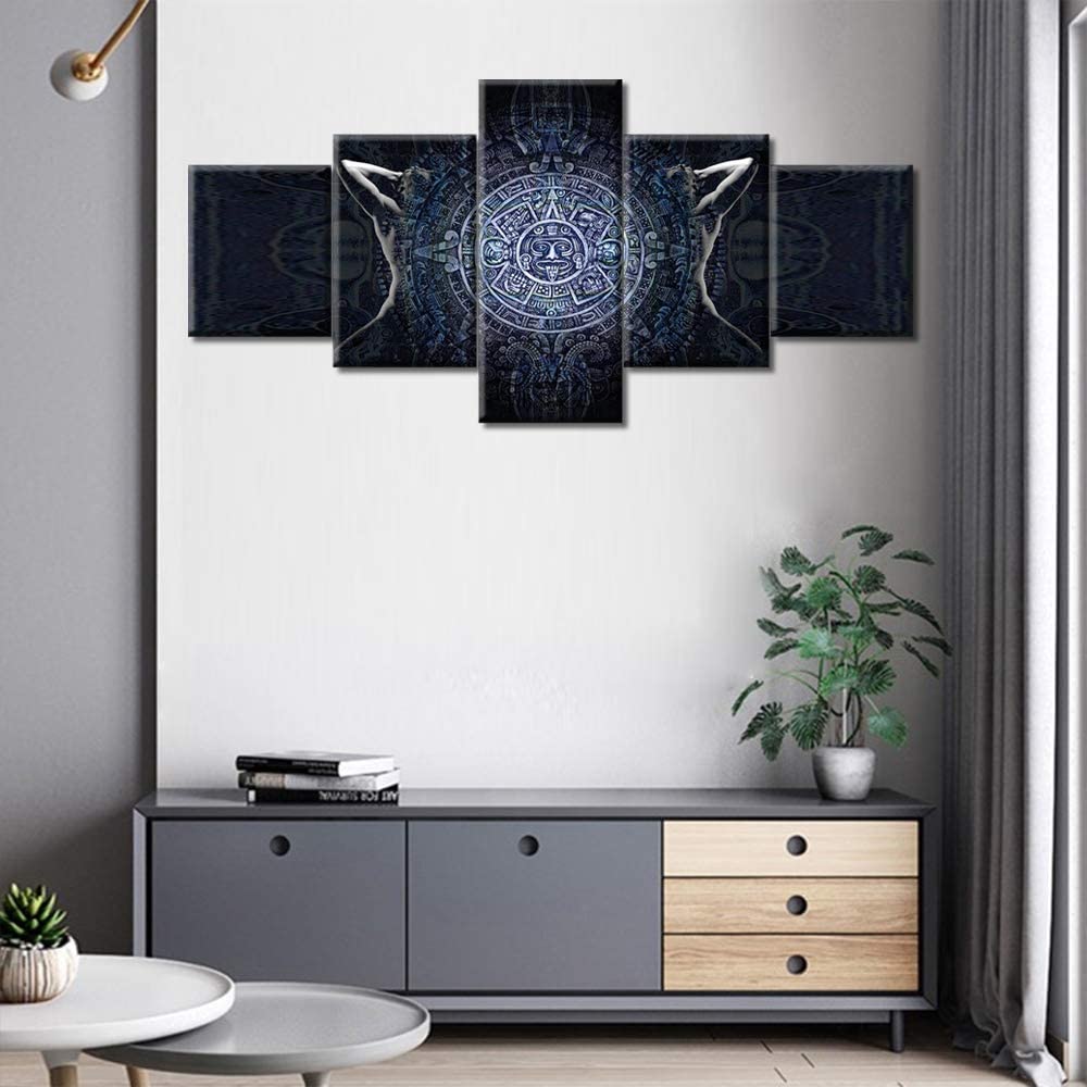 5 шт. черно-белые абстрактные картины с календарем майя, современные 5 шт., холст, плакат, 5 панелей, современные картины, настенное искусство