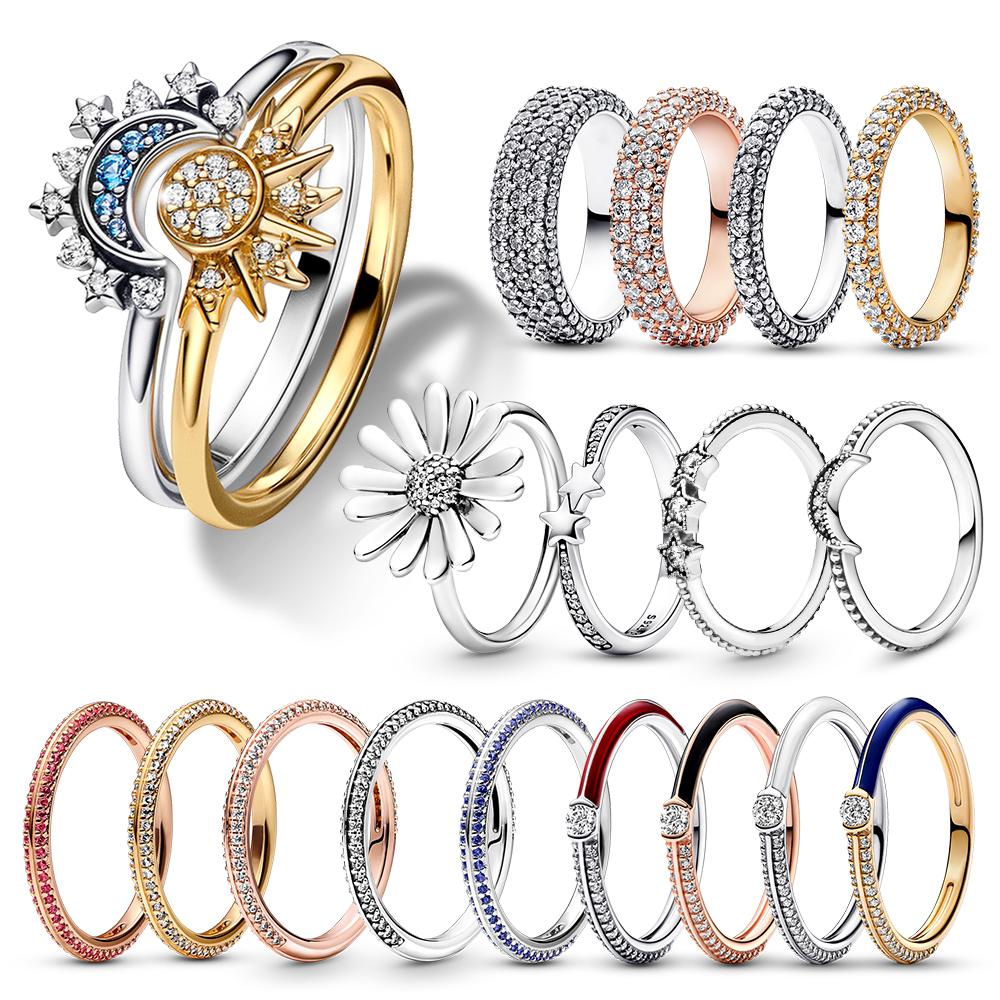 Летнее небесно-синее сверкающее кольцо с Луной и Солнцем для женщин, коктейльное штабелируемое кольцо на палец, модное серебро 925 пробы, изысканные украшения