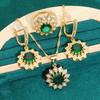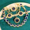 Золотой женский комплект ювелирных изделий, зеленый, синий браслет с цирконием, серьги, ожерелье, кулон, кольцо, подарок