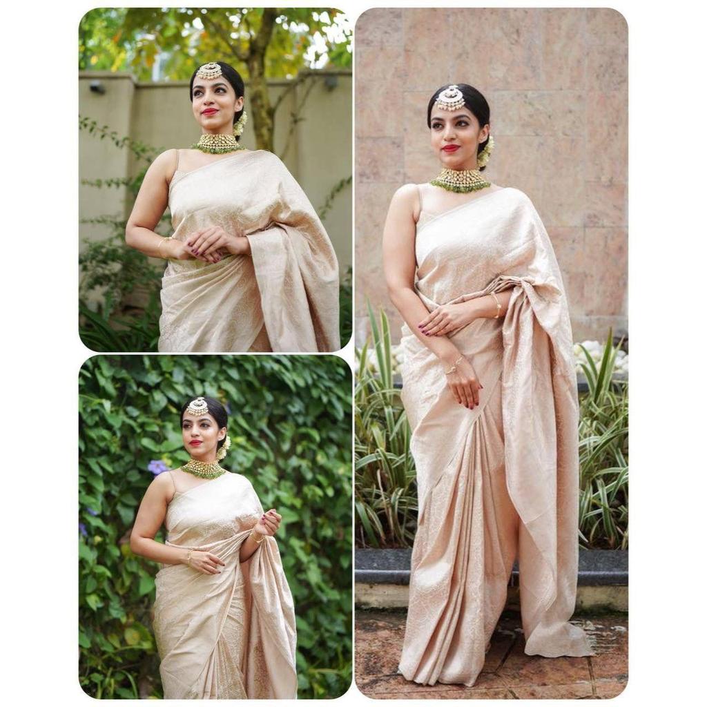 Это красивое сари элегантно украшено великолепным жаккардовым плетением, которое придает образу идеальный вид.