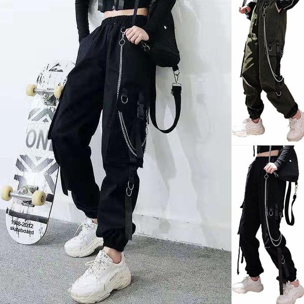 Брюки-карго с высокой талией для женщин. Спортивные повседневные брюки. Брюки в стиле хип-хоп с цепочкой. — купить товар онлайн с бесплатной доставкой по всему миру!