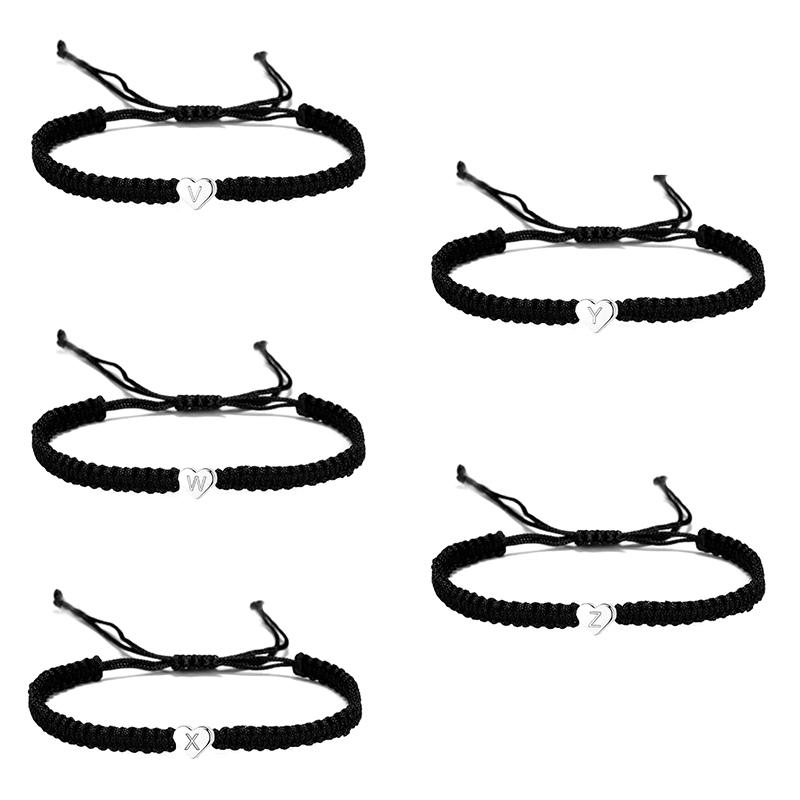 Браслеты с 26 буквами и сердечками для женщин и мужчин, инициалы А-Я, имя, плетеная веревка, регулируемый браслет, ювелирные изделия для пары, подарки для дружбы