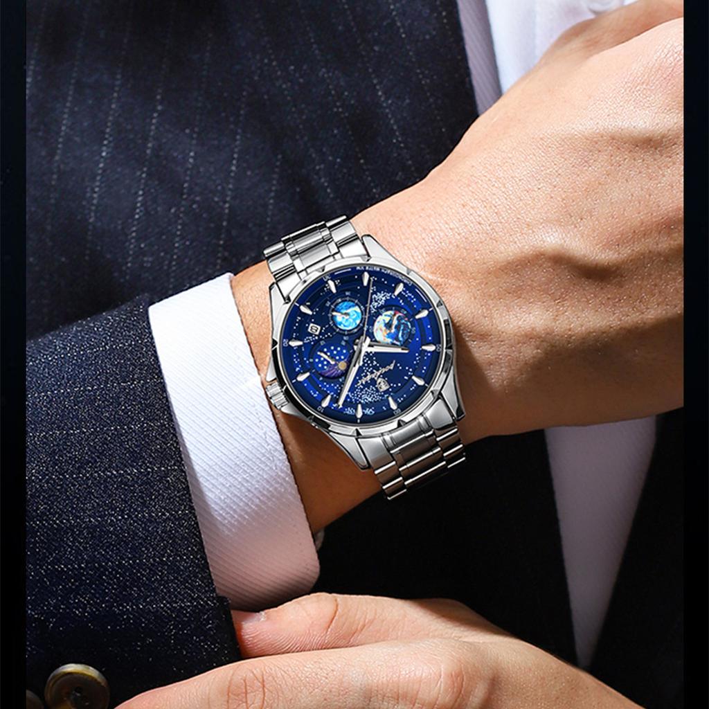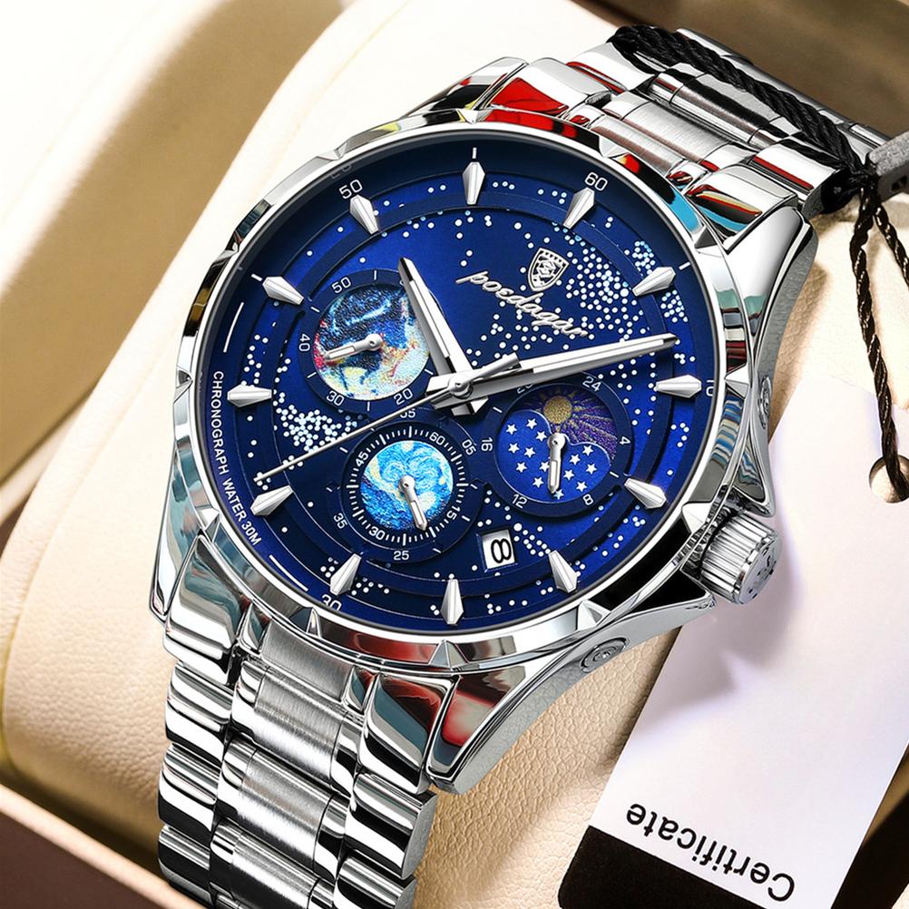 POEDAGAR Новые роскошные мужские часы ТОП-бренда с коробкой, многофункциональные светящиеся водонепроницаемые мужские кварцевые часы