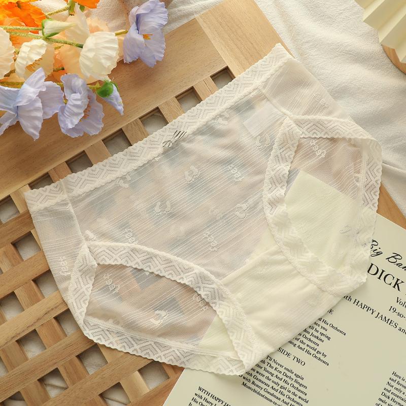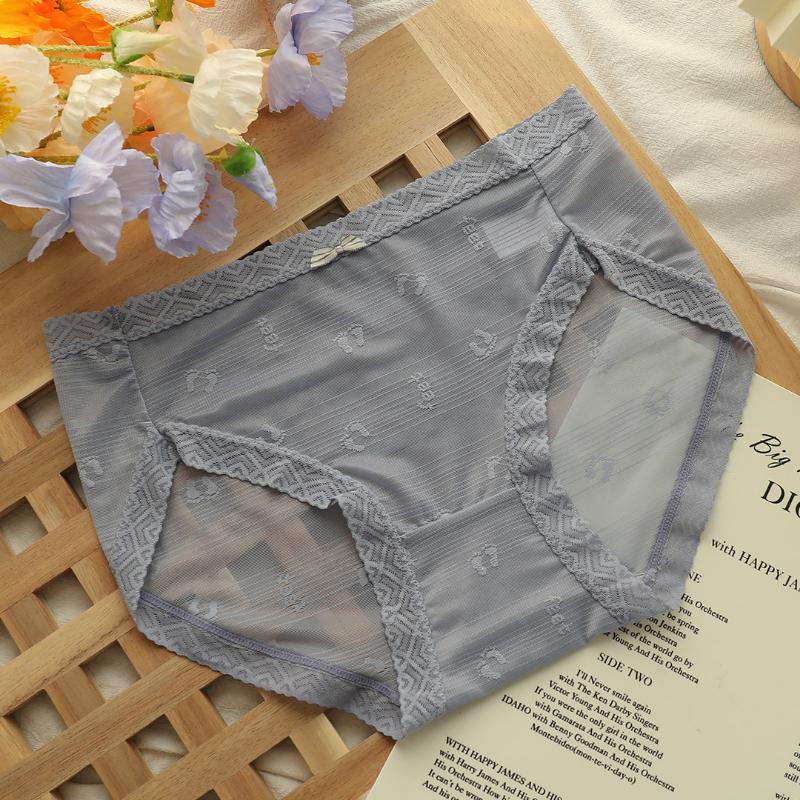 Нижнее белье, женские летние тонкие, с большой средней талией, бесшовные кружевные сексуальные хлопковые дышащие трусы для девочек с промежностью