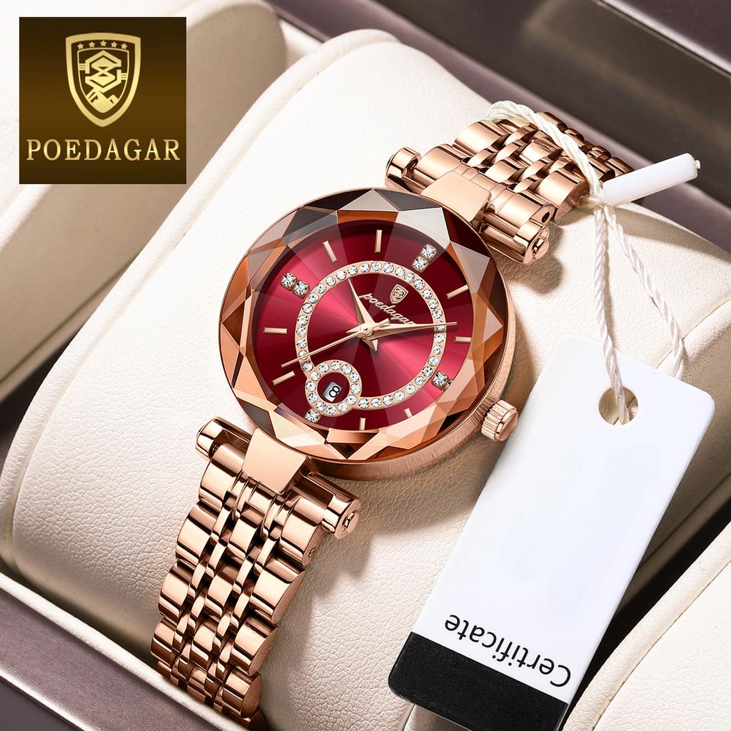 POEDAGAR Новые роскошные женские часы TOP Brand с коробкой, водонепроницаемые ультратонкие женские кварцевые часы