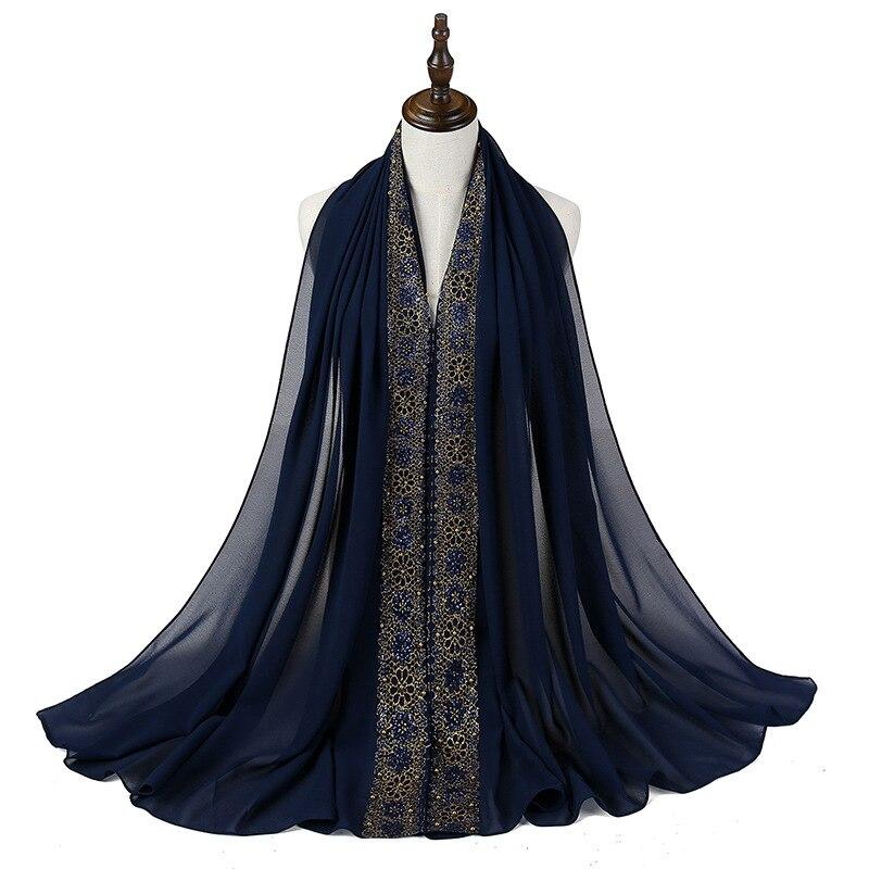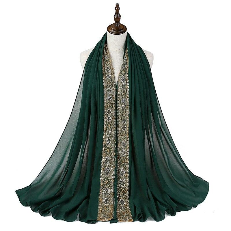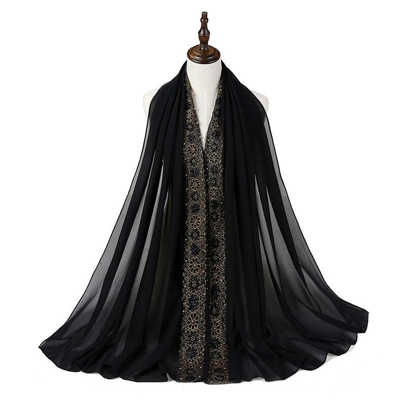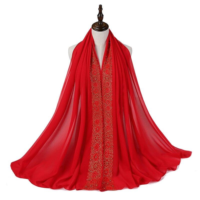 180*70 см мусульманских женщин бисером кружевной шифоновый хиджаб шарф