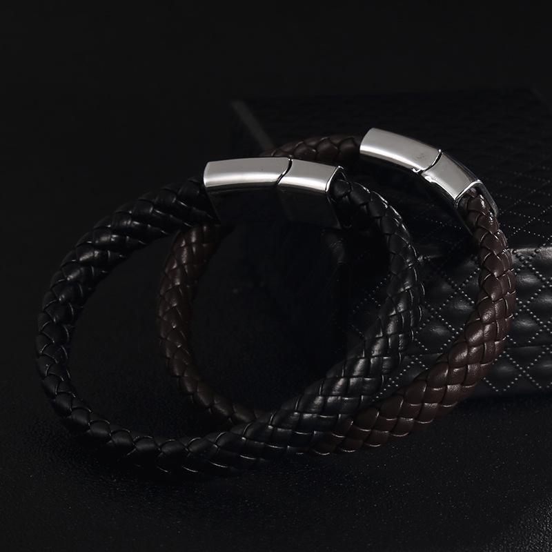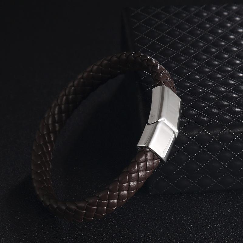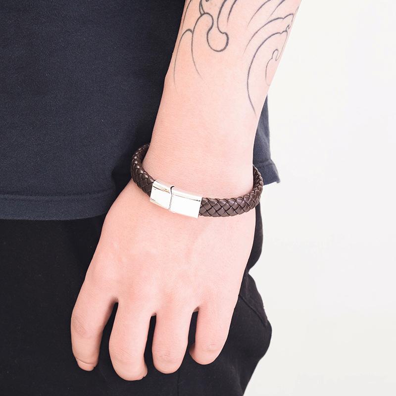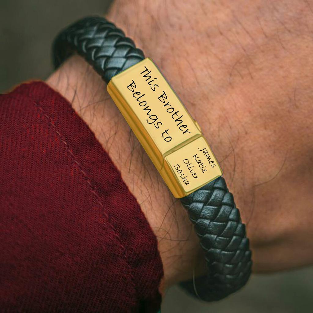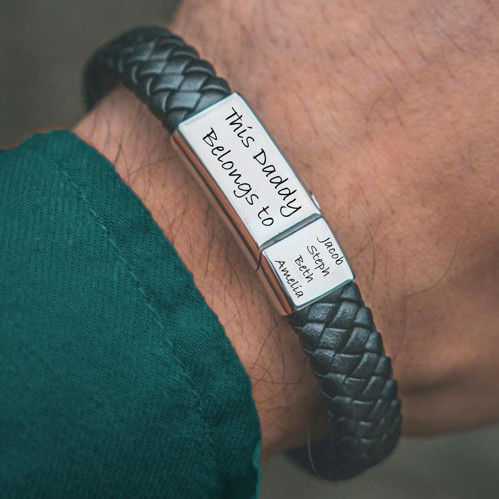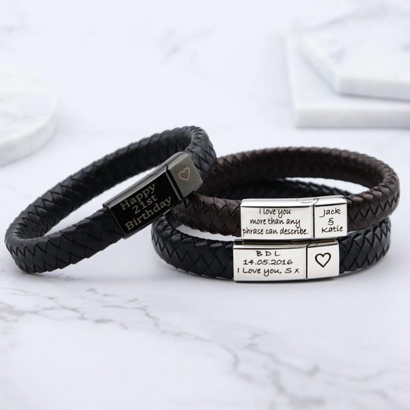PolishedPlus индивидуальный мужской браслет с гравировкой имен, плетеные кожаные браслеты из нержавеющей стали для папы, дня отца