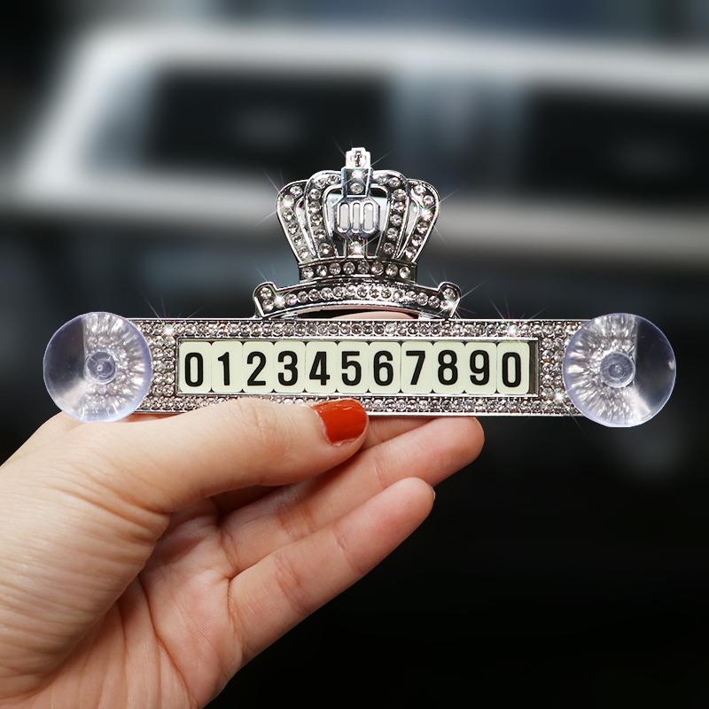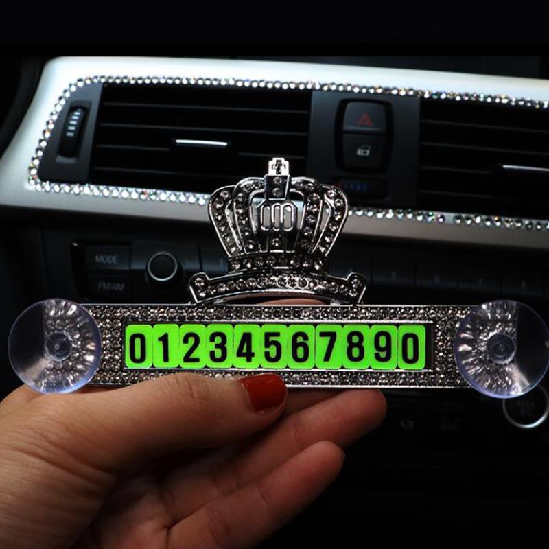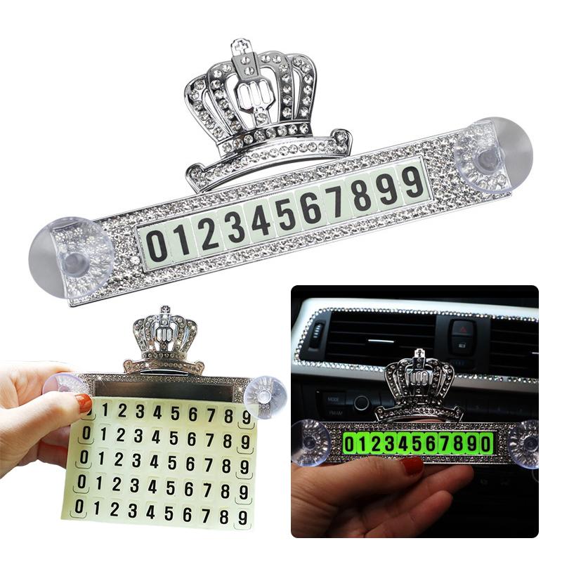 Bling Алмазная Корона Стайлинг Автомобиля Временный Знак Парковки Металл Трендовый Номер Телефона Парковочная Карта Светящийся Цифровой Орнамент