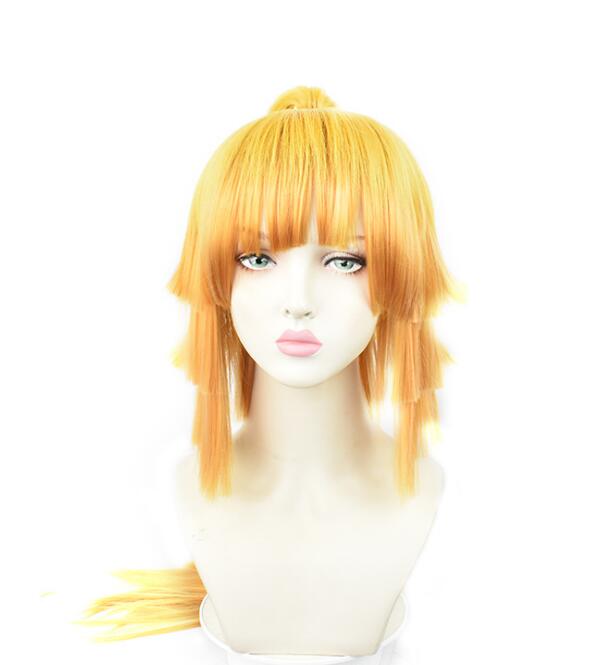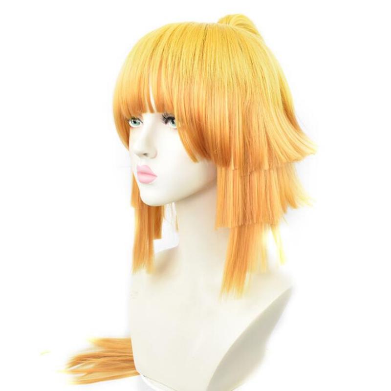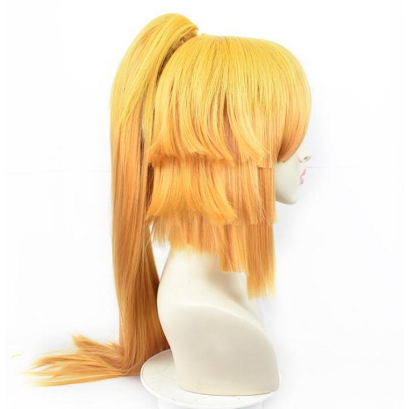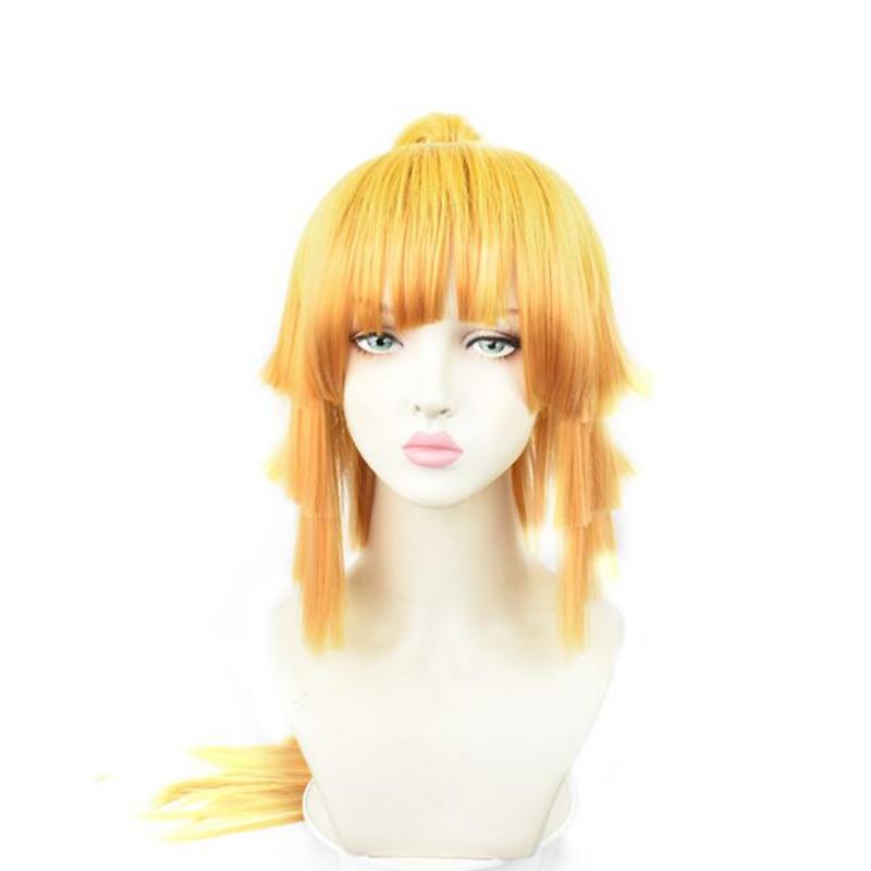 Желтый истребитель демонов Kimetsu no Yaiba Agatsuma Zenitsu, женский длинный парик с хвостиком, костюм для косплея, термостойкие парики из синтетических волос