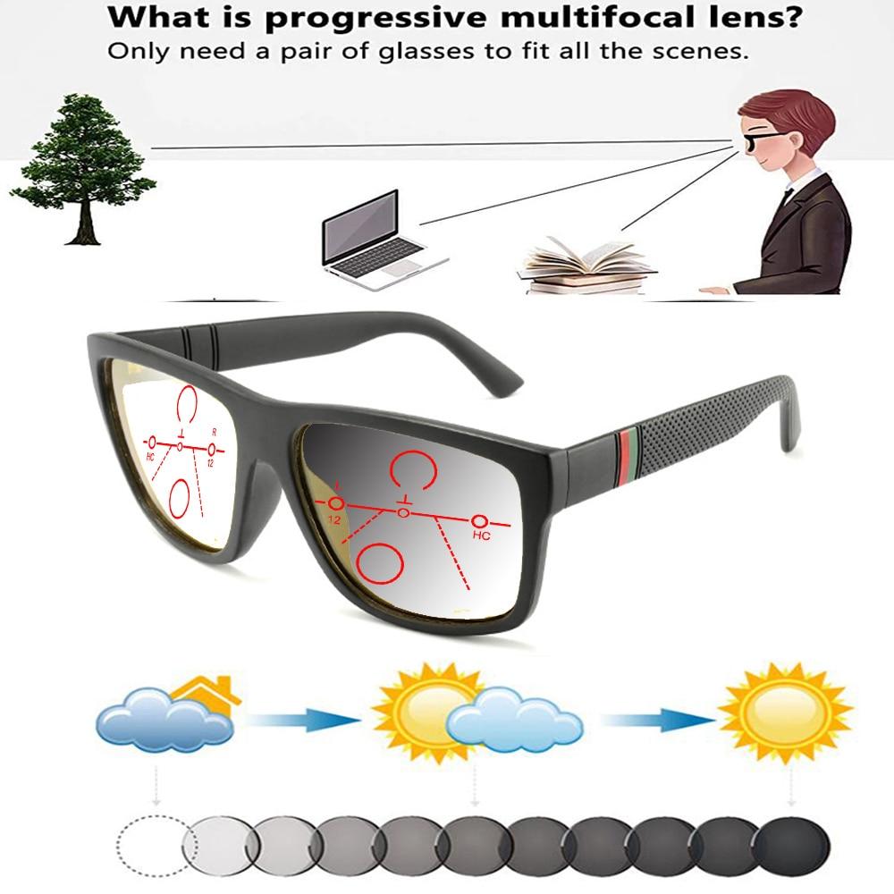Square TR90 Oversized Trend Квадратная оправа увеличенного размера Удобные фотохромные прогрессивные мультифокальные очки для чтения от +0,75 до +4