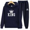 Мужские и женские толстовки с принтом King, спортивные костюмы, штаны для бега, плотная теплая одежда, мужские толстовки + брюки, комплект из двух предметов