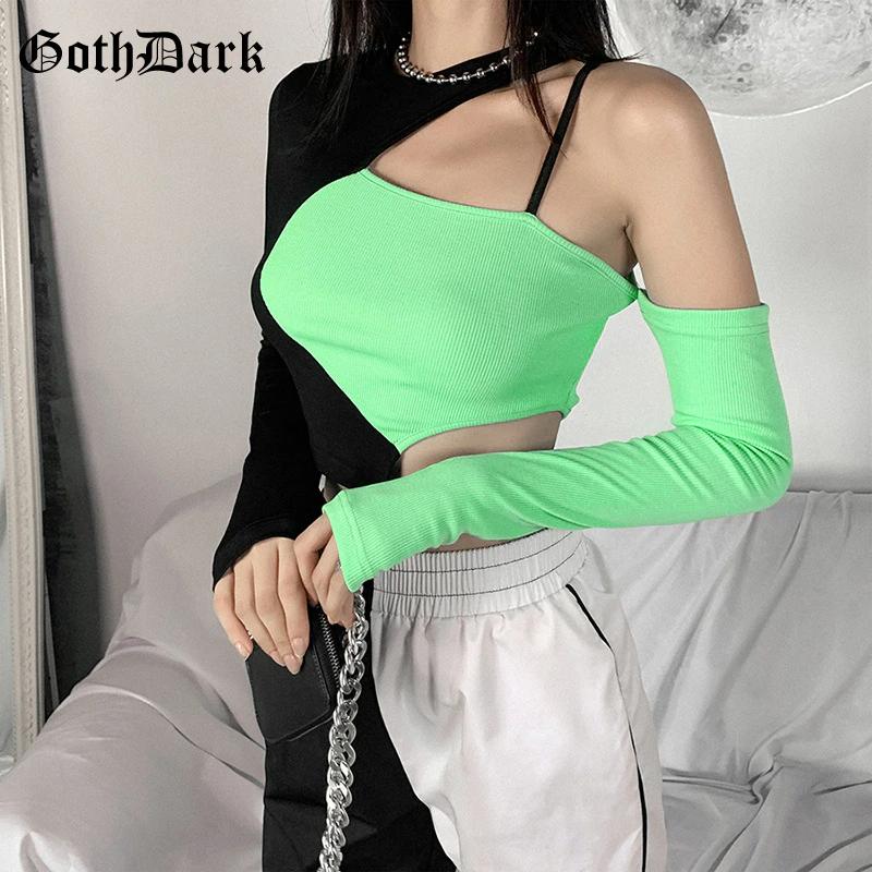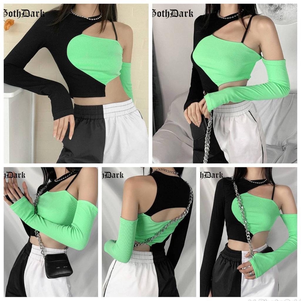 Goth Dark Y2k Лоскутные футболки в стиле E-girl в стиле панк, готический цветной топ в стиле хип-хоп с открытой спиной, технологичная одежда, уличная одежда
