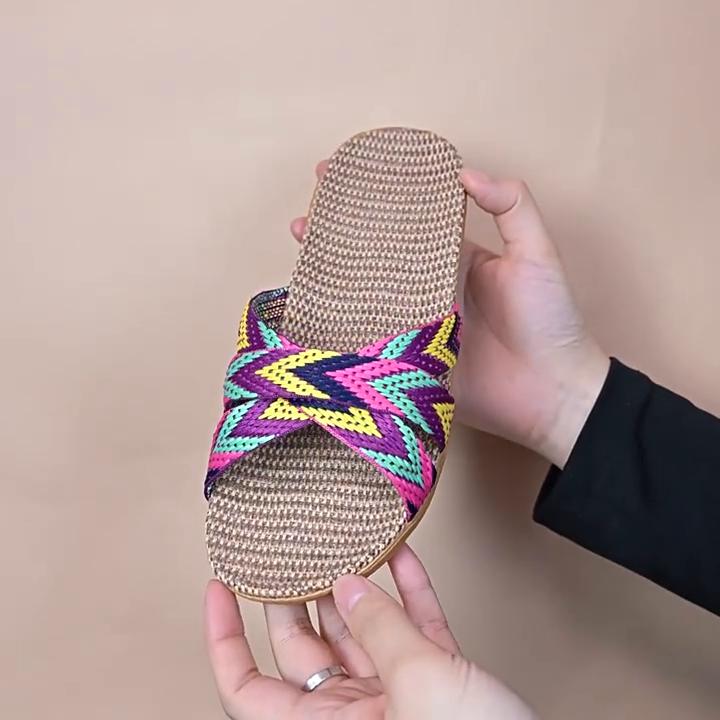 Женские тапочки больших размеров 35-45, сандалии на плоской подошве, легкие льняные повседневные летние тапочки, женские домашние тапочки