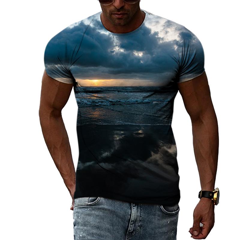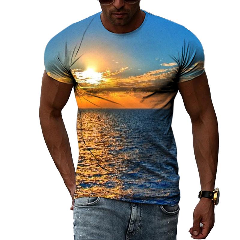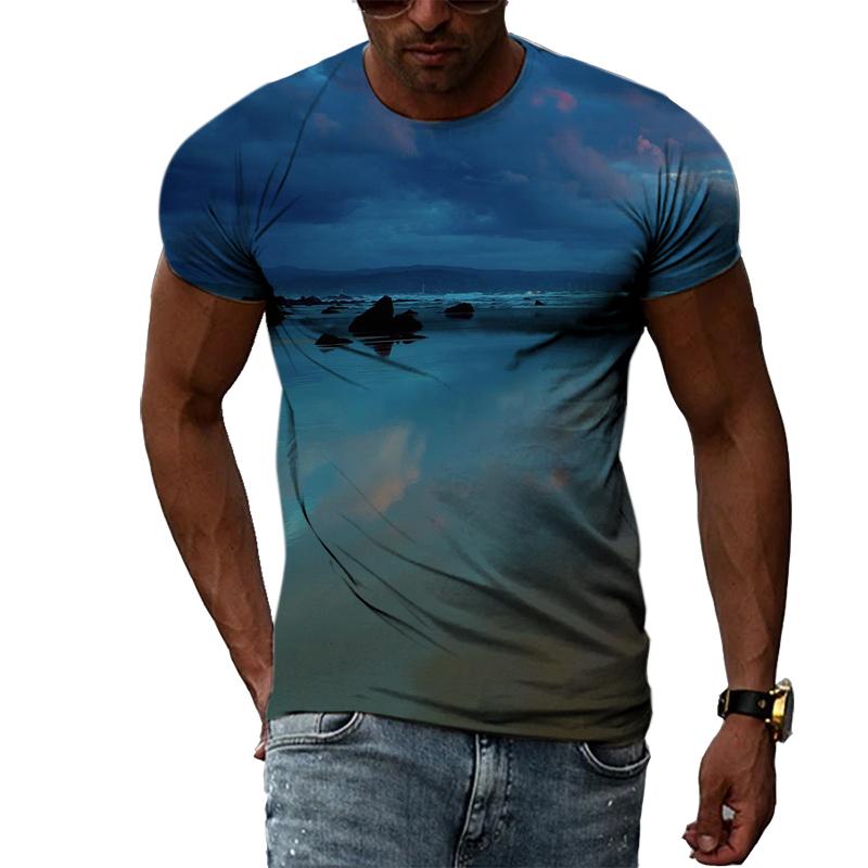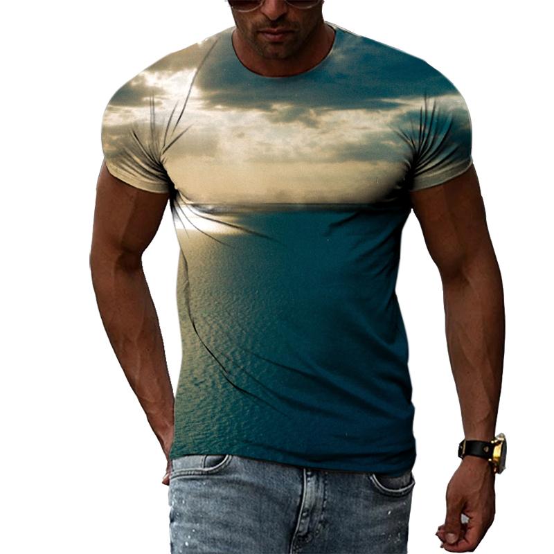 Новые трендовые мужские футболки с 3D-принтом «Природный пейзаж», летняя модная повседневная футболка в стиле хип-хоп с принтом, индивидуальная красивая футболка