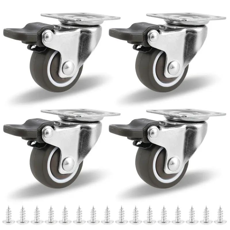 4 шт., сверхмощный поворотный ролик, бесшумные колеса тележки, мебельные резиновые вращающиеся ролики с предохранительным тормозом