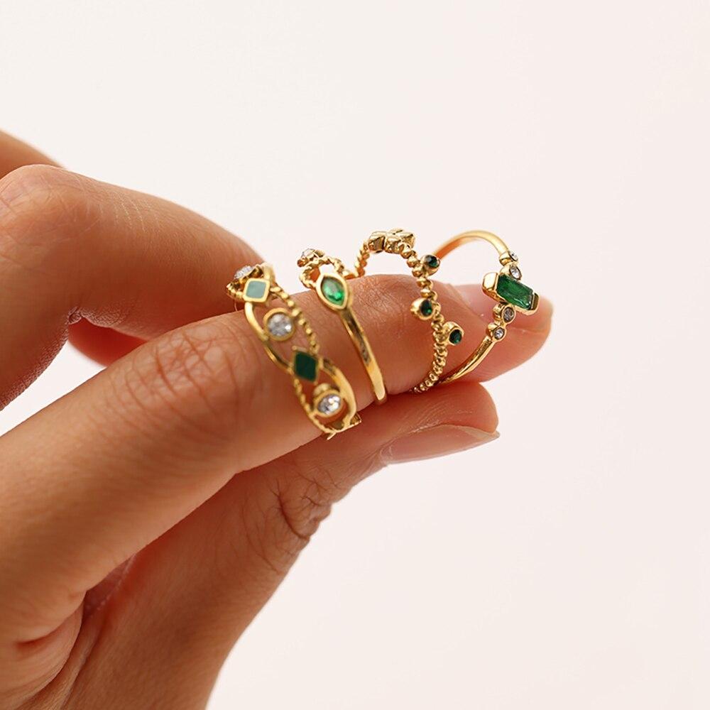 Винтажные кольца с зелеными кристаллами для женщин, позолоченные, из нержавеющей стали, роскошные геометрические кольца Anillos, женские ювелирные изделия, подарки Bague — купить товар онлайн с бесплатной доставкой по всему миру!